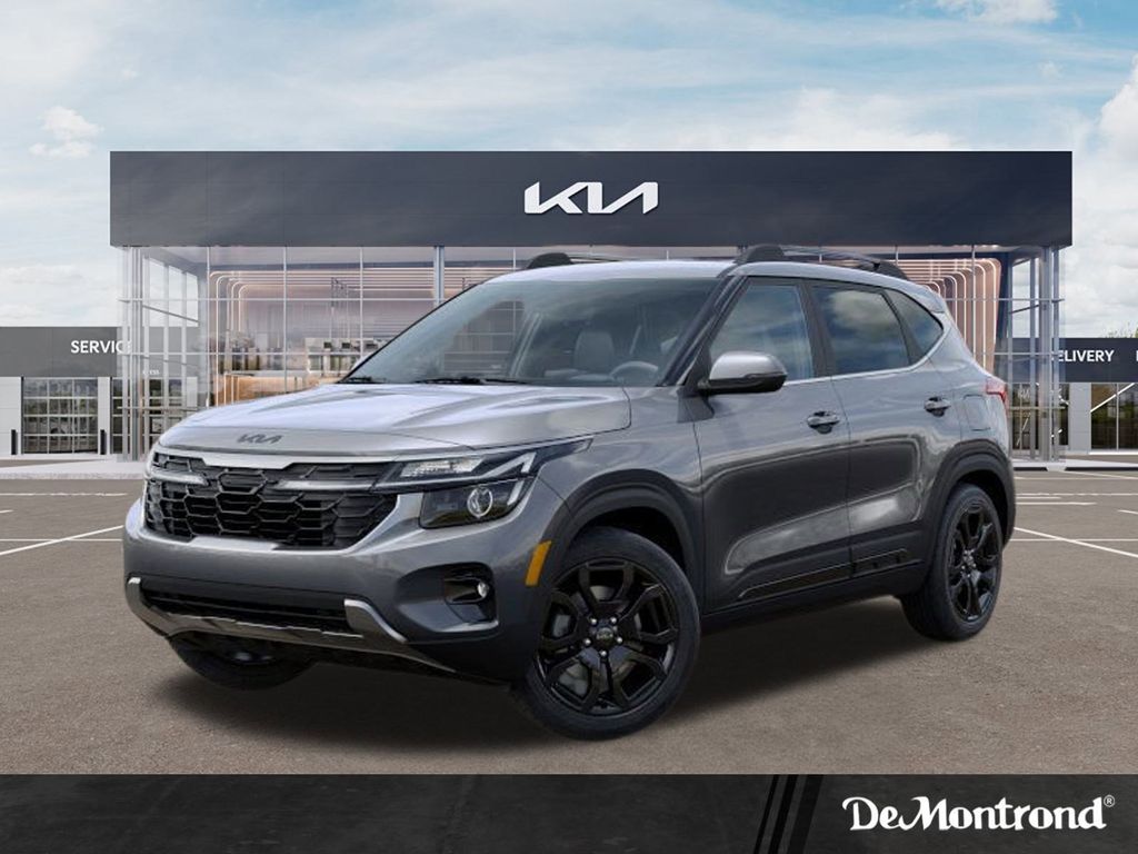 Steel Gray 2025 Kia Seltos X-LINE 1.6T AWD AWD 8-Speed Automatic I4 ABS brakes, Alloy wheels, Electronic Stability Control, Heated door mirrors, Heated front seats, Illuminated entry, Low tire pressure warning, Navigation System, Remote keyless entry, Traction control.