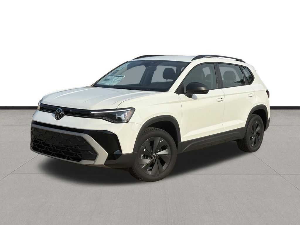 Pure White 2025 Volkswagen Taos 1.5T S FWD 8-Speed Automatic with Tiptronic 1.5L I4 Turbocharged DOHC 16V LEV3-SULEV30 174hp