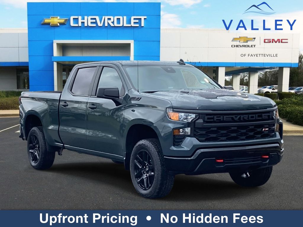 Customers all around Huntsville, Hazel Green, Meridianville, New Market, Lynchburg, Fayetteville, Guntersville to Lewisburg count on the high-quality vehicles and services found at Valley Chevrolet GMC. We look forward to living up to our 45 year reputation. Stop in and see us today, or contact our staff with any questions. Ask us about our "Valley Values" discounts. Let our team help your family find the vehicle for them, without the big city fees and half truths, and last minute ad's, just to get you in the door. Living right is just clean country values, without the big city last minute price adjustment they call accessories. 4D Crew Cab Silverado 1500 Custom Trail Boss 2026 Chevrolet Cypress Gray