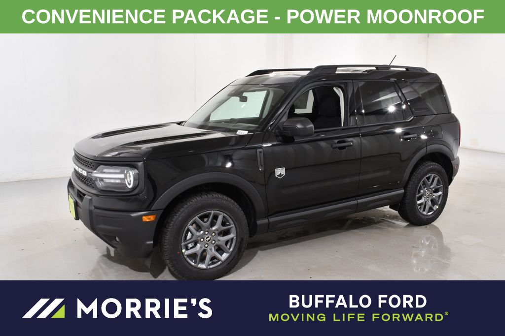 "Trail-ready crossover with premium upgrades this 2026 Ford Bronco Sport Big Bend 4x4 is powered by the efficient 1.5L EcoBoost engine and 8-speed automatic transmission. Finished in Shadow Black with a spacious 5-passenger layout, this compact SUV features the Convenience Package, 225/65R17 Continental A/T tires, power moonroof, 17" carbonized gray aluminum wheels, cargo management system, and medium light smoked truffle trim interior!"