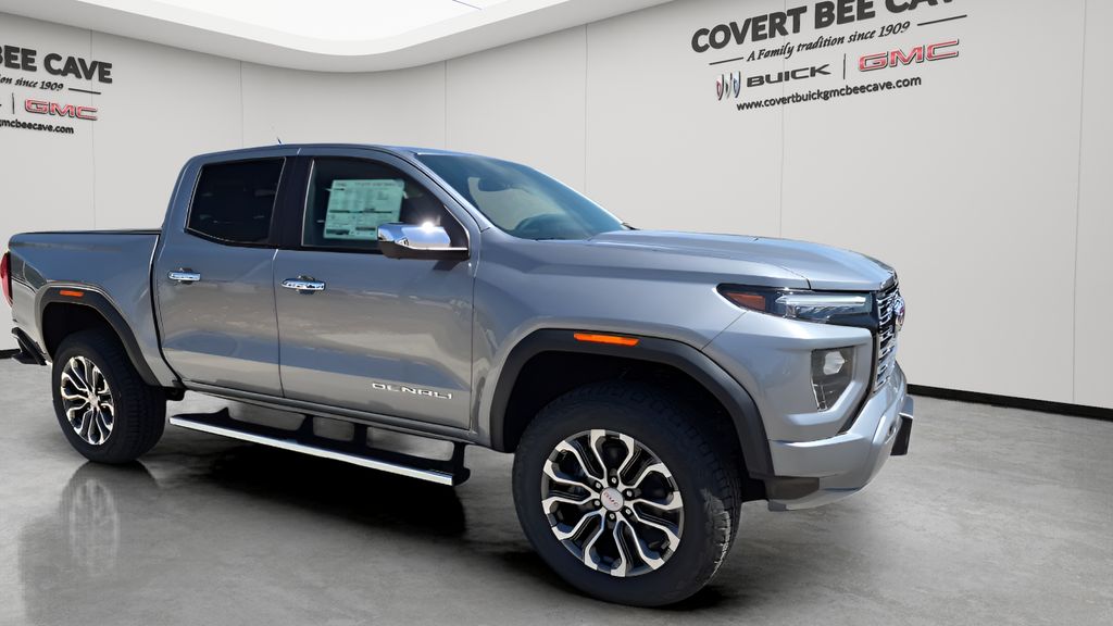 CALL (512) 954-9290 This attractive-looking 2026 Sterling Metallic Canyon Denali is proudly offered to you by Covert Buick GMC Bee Cave. This Canyon includes the popular features of Canyon Safety Plus Package (Blind Zone Steering Assist with Trailering, Rear Cross Traffic Braking, and Ultrasonic Rear Park Assist), Preferred Equipment Group 5SB (120-Volt Bed Mounted Power Outlet, 2 Rear USB Ports in Center Console (Charge-Only), 5" Rectangular Chrome Assist Steps, 6-Way Power Passenger Seat Adjuster, 8-Way Power Driver Seat Adjuster, Adaptive Cruise Control, Automatic Emergency Braking, Canyon Pro Safety, Driver and Front Passenger Illuminated Visors, Driver and Front Passenger Ventilated Seats, Driver Memory, Driver Seatback Map Pocket, Dual-Zone Automatic Climate Control Air Conditioning, EZ-Lift and Lower Tailgate, Following Distance Indicator, Forward Collision Alert, Front LED Fog Lamps, Front Pedestrian and Bicyclist Braking, HD Surround Vision, Heated Driver and Front Passenger Seats, Heated Steering Wheel, Inside Rear-View Auto-Dimming Mirror, IntelliBeam Automatic High Beam on/Off, Interior Overhead Courtesy Light with Dual Reading Lamp, Lane Keep Assist with Lane Departure Warning, Multicolor 6.3" Diagonal Head-Up Display, MultiStow Tailgate Storage Compartment, Power Driver Lumbar Control Seat Adjuster, Power Passenger Lumbar Control Seat Adjuster, Premium 7-Speaker Bose Sound System, Rear Center Fold-Down Armrest with 2 Cupholders, Rear of Console 120-Volt Power Outlet, Rear Pedestrian Alert, Remote Vehicle Starter System, Safety Alert Seat, Spray-on Bedliner with GMC Logo, Tailgate Keyed Cylinder Lock, Til and Telescopic Manual Steering Column, and Wireless Phone Charging), and 4WD.