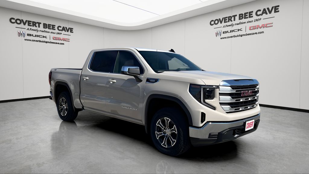 CALL (512) 954-9290 This charming-looking 2026 Dune Sierra 1500 SLE is proudly offered to you by Covert Buick GMC Bee Cave. This Sierra 1500 includes the popular features of Preferred Equipment Group 3SA (10-Way Power Driver Seat Adjuster with Lumbar, 120-Volt Bed Mounted Power Outlet, 120-Volt Interior Power Outlet, 2 Charge/Data USB Ports, 2 Type-C Charge-Only Rear USB Ports, 4-Way Manual Passenger Seat Adjuster, Chrome Header with Medium Silver Grille Insert Bars, Color-Keyed Carpeting Floor Covering, Deep-Tinted Glass, Front 40/20/40 Split-Bench Seat, Front Frame-Mounted Black Recovery Hooks, Front Rubberized-Vinyl Floor Mats, HD Rear Vision Camera, Heated Driver and Front Outboard Passenger Seating, Integrated Trailer Brake Controller, Keyless Open and Start, Manual Tilt-Wheel and Telescoping Steering Column, OnStar Services Capable, Power Door Locks, Power Front Windows with Driver Express Up/Down, Power Front Windows with Passenger Express Down, Power Rear Windows with Express Down, Push Button Start, Rear Rubberized-Vinyl Floor Mats, SiriusXM with 360L Trial Subscription, Steering Wheel Audio Controls, Wheels: 17" x 8" Bright Silver Painted Aluminum, and Wi-Fi Hotspot Capable), Remote Start Package (Electric Rear-Window Defogger, Remote Vehicle Starter System, and Theft Deterrent System (unauthorized Entry)), SLE Convenience Package (Dual-Zone Automatic Climate Control and LED Cargo Area Lighting), SLE Value Package (Auto-Locking Rear Differential), Trailering Package (Hitch Guidance), 10-Speed Automatic, 4WD, and Dk Walnut/Slate Clth Cloth.