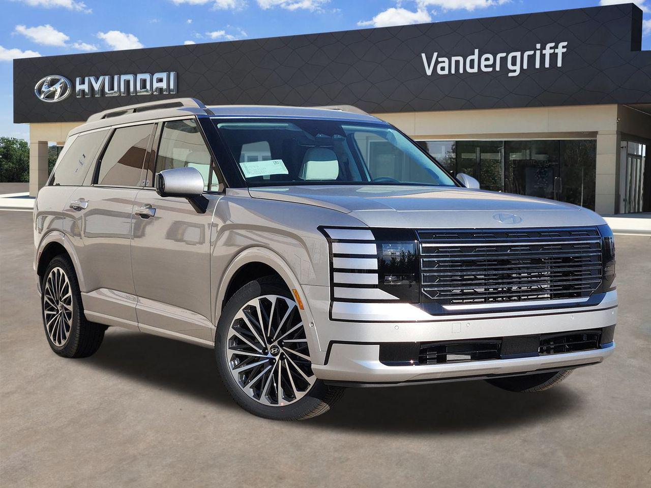 Step into the Future of Luxury and Innovation with the 2026 Hyundai Palisade Calligraphy in Typhoon Silver Metallic Experience the pinnacle of sophistication and performance with the 2026 Hyundai Palisade Calligraphy. This SUV is crafted for those who demand more from their drive, offering a seamless blend of power and elegance. The V6 engine and 8-speed automatic transmission ensure a smooth and responsive ride, while the front-wheel drive enhances maneuverability. Safety is paramount with features like Blind Spot Monitor, Lane Keeping Assist, and Rear Collision Mitigation, providing peace of mind on every journey. Inside, the Palisade Calligraphy redefines comfort with its luxurious leather seats, heated and cooled for both front and rear passengers. The third-row seating ensures ample space for family and friends, while the power-adjustable seats with massage functions cater to your every need. Stay connected with the cutting-edge navigation system and WiFi hotspot, while the premium sound system envelops you in crystal-clear audio. The exterior is equally impressive, with a sleek sun/moonroof and striking aluminum wheels that command attention. The hands-free liftgate and remote engine start add convenience to your daily routine. Discover a new level of driving pleasure with the Hyundai Palisade Calligraphy, where every detail is designed to exceed expectations. Be sure to call or visit Vandergriff Hyundai to discover more. Your new favorite vehicle awaits - don't let someone else drive it home!