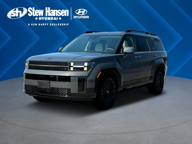 2026 Hyundai Santa Fe Calligraphy ECOTRONIC GRY AWD 8-Speed Automatic with SHIFTRONIC 2.5L I4 AWD, Gray Leather, 12 Speakers, 3rd row seat, 4-Wheel Disc Brakes, ABS brakes, Air Conditioning, Alloy wheels, AM/FM radio: SiriusXM, Apple CarPlay & Android Auto, Auto High-beam Headlights, Auto-dimming Rear-View mirror, Automatic temperature control, Brake assist, Bumpers: body-color, Cargo Cover/Screen, Cargo Net, Cargo Organizer, Cargo Tray, Carpeted Floor Mats, Delay-off headlights, Driver door bin, Driver vanity mirror, Dual front impact airbags, Dual front side impact airbags, Electronic Stability Control, Emergency communication system, Exterior Parking Camera Rear, First Aid Kit, Four wheel independent suspension, Front anti-roll bar, Front Bucket Seats, Front Center Armrest, Front dual zone A/C, Front reading lights, Fully automatic headlights, Garage door transmitter: HomeLink, Heads-Up Display, Heated and Ventilated Front Bucket Seats, Heated door mirrors, Heated front seats, Heated rear seats, Heated steering wheel, Illuminated entry, Knee airbag, Leather steering wheel, Low tire pressure warning, Memory seat, Navigation System, Occupant sensing airbag, Option Group 01, Outside temperature display, Overhead airbag, Overhead console, Panic alarm, Passenger door bin, Passenger vanity mirror, Power door mirrors, Power driver seat, Power Liftgate, Power moonroof, Power passenger seat, Power steering, Power windows, Quilted Premium Nappa Leather Seat Trim, Radio: AM/FM/HD Bose Premium Audio System, Rain sensing wipers, Rear anti-roll bar, Rear side impact airbag, Rear window defroster, Rear window wiper, Remote keyless entry, Roadside Assistance Kit, Security system, Speed control, Speed-sensing steering, Split folding rear seat, Spoiler, Steering wheel mounted audio controls, Tachometer, Telescoping steering wheel, Tilt steering wheel, Traction control, Trip computer, Turn signal indicator mirrors, Variably intermittent wipers, Ventilated front seats, Wheels: 21" x 8.5J Unique Dark Finish Alloy, AWD, Gray Leather.