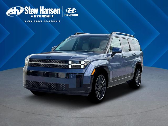 2026 Hyundai Santa Fe Calligraphy ATLANTIS BLU AWD 8-Speed Automatic with SHIFTRONIC 2.5L I4 AWD, Black Leather, 12 Speakers, 3rd row seat, 4-Wheel Disc Brakes, ABS brakes, Air Conditioning, Alloy wheels, AM/FM radio: SiriusXM, Apple CarPlay & Android Auto, Auto High-beam Headlights, Auto-dimming Rear-View mirror, Automatic temperature control, Brake assist, Bumpers: body-color, Cargo Net, Cargo Tray, Carpeted Floor Mats, Delay-off headlights, Driver door bin, Driver vanity mirror, Dual front impact airbags, Dual front side impact airbags, Electronic Stability Control, Emergency communication system, Exterior Parking Camera Rear, First Aid Kit, Four wheel independent suspension, Front anti-roll bar, Front Bucket Seats, Front Center Armrest, Front dual zone A/C, Front reading lights, Fully automatic headlights, Garage door transmitter: HomeLink, Heads-Up Display, Heated and Ventilated Front Bucket Seats, Heated door mirrors, Heated front seats, Heated rear seats, Heated steering wheel, Illuminated entry, Knee airbag, Leather steering wheel, Low tire pressure warning, Memory seat, Navigation System, Occupant sensing airbag, Option Group 01, Outside temperature display, Overhead airbag, Overhead console, Panic alarm, Passenger door bin, Passenger vanity mirror, Power door mirrors, Power driver seat, Power Liftgate, Power moonroof, Power passenger seat, Power steering, Power windows, Quilted Premium Nappa Leather Seat Trim, Radio: AM/FM/HD Bose Premium Audio System, Rain sensing wipers, Rear anti-roll bar, Rear side impact airbag, Rear window defroster, Rear window wiper, Remote keyless entry, Roadside Assistance Kit, Roof Rack Crossbars, Security system, Speed control, Speed-sensing steering, Split folding rear seat, Spoiler, Steering wheel mounted audio controls, Tachometer, Telescoping steering wheel, Tilt steering wheel, Traction control, Trip computer, Turn signal indicator mirrors, Variably intermittent wipers, Ventilated front seats, Wheels: 21" x 8.5J Unique Dark Finish Alloy, AWD, Black Leather.