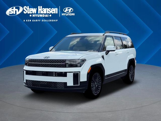 2026 Hyundai Santa Fe Hybrid Calligraphy SERENITY WHT AWD 6-Speed Automatic with Shiftronic I4 I4, 12 Speakers, 3rd row seat, 4-Wheel Disc Brakes, ABS brakes, Air Conditioning, Alloy wheels, AM/FM radio: SiriusXM, Apple CarPlay & Android Auto, Auto High-beam Headlights, Auto-dimming Rear-View mirror, Automatic temperature control, Brake assist, Bumpers: body-color, Cargo Net, Cargo Tray, Carpeted Floor Mats, Delay-off headlights, Driver door bin, Driver vanity mirror, Dual front impact airbags, Dual front side impact airbags, Electronic Stability Control, Emergency communication system, Exterior Parking Camera Rear, First Aid Kit, Four wheel independent suspension, Front anti-roll bar, Front Bucket Seats, Front Center Armrest, Front dual zone A/C, Front reading lights, Fully automatic headlights, Garage door transmitter: HomeLink, Heads-Up Display, Heated and Ventilated Front Bucket Seats, Heated door mirrors, Heated front seats, Heated rear seats, Heated steering wheel, Illuminated entry, Knee airbag, Leather steering wheel, Low tire pressure warning, Memory seat, Navigation System, Occupant sensing airbag, Option Group 01, Outside temperature display, Overhead airbag, Overhead console, Panic alarm, Passenger door bin, Passenger vanity mirror, Power door mirrors, Power driver seat, Power Liftgate, Power moonroof, Power passenger seat, Power steering, Power windows, Quilted Premium Nappa Leather Seat Trim, Radio: AM/FM/HD Bose Premium Audio System, Rain sensing wipers, Rear anti-roll bar, Rear side impact airbag, Rear window defroster, Rear window wiper, Remote keyless entry, Roof Rack Crossbars, Security system, Speed control, Speed-sensing steering, Split folding rear seat, Spoiler, Steering wheel mounted audio controls, Tachometer, Telescoping steering wheel, Tilt steering wheel, Traction control, Trip computer, Turn signal indicator mirrors, Variably intermittent wipers, Ventilated front seats, Wheels: 20" x 8.5J Unique Dark Finish Alloy, I4.