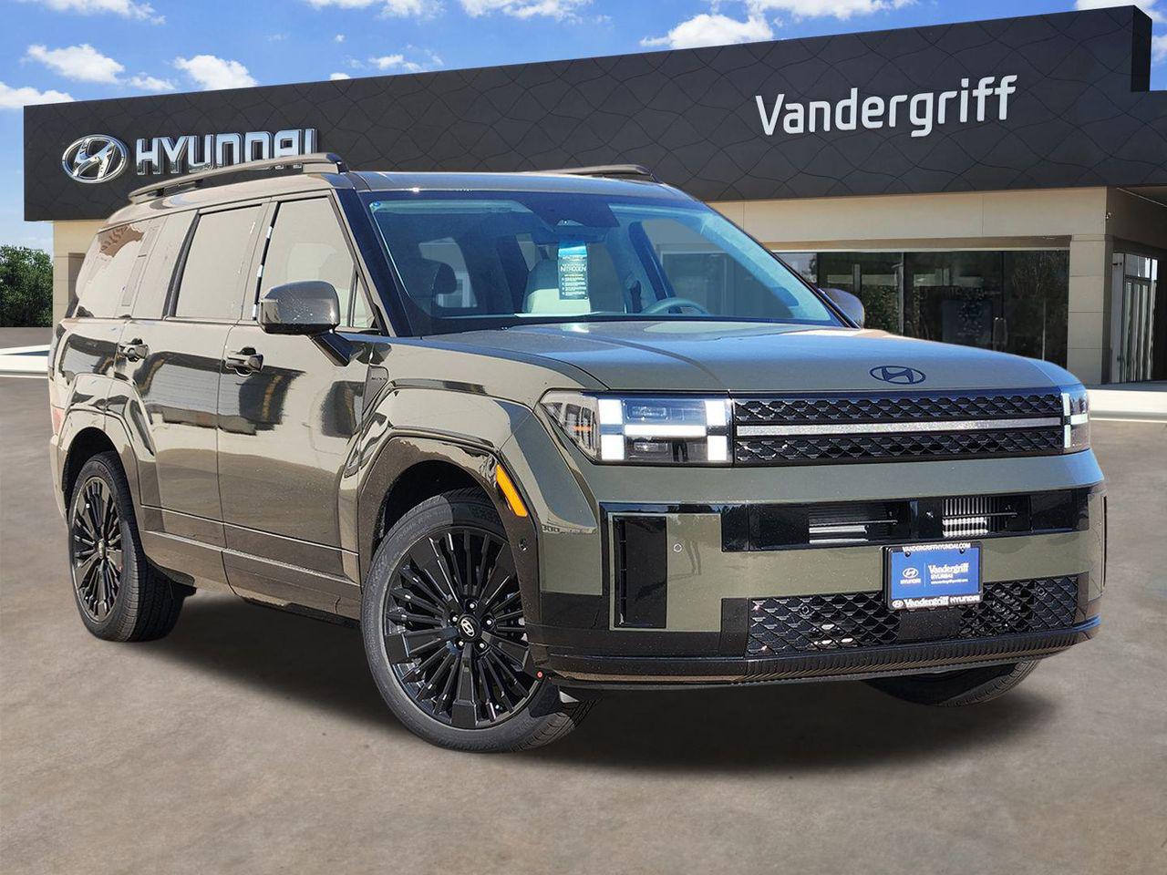 Discover the Future of Driving with the 2026 Hyundai Santa Fe Hybrid Calligraphy: Efficiency, Style, and Innovation in a Luxurious, Eco-Friendly Package The 2026 Hyundai Santa Fe Hybrid Calligraphy is designed for the discerning driver who values both luxury and sustainability. Its sleek Rockwood Green exterior is complemented by a sophisticated interior featuring leather seats and woodgrain trim, providing a refined driving experience. The hybrid powertrain combines a turbocharged 4-cylinder engine with a lithium-ion traction battery, ensuring a smooth, fuel-efficient ride with the capability of all-wheel drive. Safety is paramount, with a suite of advanced features like Blind Spot Monitor, Lane Keeping Assist, and Rear Collision Mitigation. The Santa Fe Hybrid also offers cutting-edge technology, including a Heads-Up Display and an Aerial View Display System, ensuring you stay connected and informed on every journey. Adaptive Cruise Control and Automatic Parking make urban driving a breeze, while the Hands-Free Liftgate and Remote Engine Start add convenience to your daily routine. Inside, the Santa Fe Hybrid pampers with heated and cooled front seats, a premium sound system, and a WiFi hotspot, making it the perfect companion for long road trips or daily commutes. Experience the perfect blend of elegance, performance, and eco-consciousness with the 2026 Hyundai Santa Fe Hybrid Calligraphy. Be sure to call or visit Vandergriff Hyundai to discover more. Your new favorite vehicle awaits - don't let someone else drive it home!