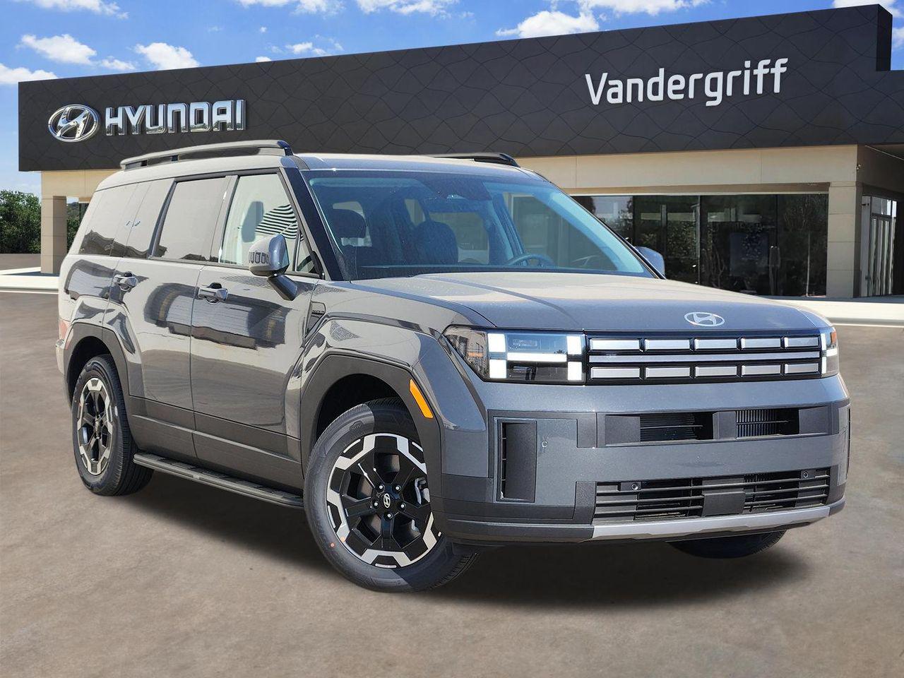 Experience the perfect blend of style, comfort, and advanced safety in the 2026 Hyundai Santa Fe SEL, designed for drivers who value confident, connected journeys. The Santa Fe SEL s turbocharged 4-cylinder engine paired with an 8-speed automatic transmission delivers responsive performance and smooth handling, ideal for city streets or weekend getaways. Front-wheel drive enhances fuel efficiency without sacrificing traction, while the aluminum wheels and all-season tires provide a stable ride in diverse conditions. Step inside to find premium synthetic seats with heated front seating and a power-adjustable driver s seat featuring lumbar support, ensuring comfort on every drive. The spacious cabin accommodates up to seven with a versatile third-row seat and pass-through rear seating, perfect for family or friends. Safety is paramount with features like blind spot monitoring, lane keeping assist, front collision mitigation, and rear collision mitigation, giving you peace of mind on every trip. The hands-free power liftgate and remote engine start add convenience to your busy lifestyle, while smart device integration and Bluetooth connectivity keep you seamlessly connected. Finished in sleek Ecotronic Gray with a sporty rear spoiler, this Santa Fe SEL stands out with both function and flair. Designed for those who seek reliability, style, and advanced technology, this SUV is ready to support your active life. Be sure to call or visit Vandergriff Hyundai to discover more. Your new favorite vehicle awaits - don't let someone else drive it home!