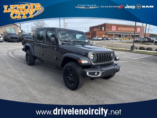 Lenoir City Chrysler is proud to offer this superb 2026 Jeep Gladiator in ranite Crystal Metallic Clearcoat. This 2026 Jeep Gladiator has passed our comprehensive inspection and comes with the following features; Quick Order Package 24B Sport, 110 Mph Vehicle Max Speed Calibration, 12.3" Touchscreen Display, 3.73 Rear Axle Ratio, 4-Wheel Disc Brakes, 4G LTE Wi-Fi Hot Spot, 8 Speakers, ABS brakes, Air Conditioning, Alexa Built-in, AM/FM radio: SiriusXM with 360L, Apple CarPlay, Apple CarPlay/Android Auto, Black 3-Piece Hard Top, Brake assist, Cloth Low-Back Bucket Seats, Compass, Connectivity - US/Canada, Delay-off headlights, Driver door bin, Driver vanity mirror, Dual front impact airbags, Dual front side impact airbags, Electronic Stability Control, Freedom Panel Storage Bag, Front anti-roll bar, Front Bucket Seats, Front Center Armrest w/Storage, Front fog lights, Front reading lights, Google Android Auto, Illuminated entry, Integrated roll-over protection, Low tire pressure warning, Manufacturer's Statement of Origin, Normal Duty Suspension, Occupant sensing airbag, Outside temperature display, Overhead airbag, Panic alarm, ParkView Rear Back-Up Camera, Passenger door bin, Passenger vanity mirror, Power steering, Power windows, Radio data system, Radio: Uconnect 5 with 12.3" Display, Rear anti-roll bar, Rear reading lights, Rear Sliding Window, Rear Window Defroster, Remote keyless entry, Speed control, Split folding rear seat, Steering wheel mounted audio controls, Tachometer, Telescoping steering wheel, Tilt steering wheel, Traction control, Trip computer, USB Host Flip, Variably intermittent wipers, Voltmeter, and Wheels: 17" x 7.5" Black Steel Styled.