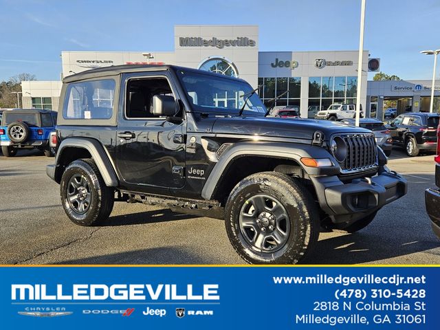 Five Star Milledgeville Chrysler Dodge Jeep Ram is proud to offer this good-looking and fun 2026 Jeep Wrangler in Black Clearcoat. This 2026 Jeep Wrangler has passed our comprehensive inspection and comes with the following features; Quick Order Package 22B Sport, Quick Order Package 23B Sport, 12.3" Touchscreen Display, 3.45 Overall Top Gear Ratio, 4-Wheel Disc Brakes, 4G LTE Wi-Fi Hot Spot, 8 Speakers, ABS brakes, Air Conditioning, AM/FM radio: SiriusXM with 360L, Apple CarPlay, Apple CarPlay/Android Auto, Aux Battery, Brake assist, Cloth Low-Back Bucket Seats, Compass, Connectivity - US/Canada, Delay-off headlights, Driver door bin, Driver vanity mirror, Dual front impact airbags, Dual front side impact airbags, Electronic Stability Control, For More Info, Call 800-643-2112, Front anti-roll bar, Front Bucket Seats, Front Center Armrest w/Storage, Front fog lights, Front reading lights, FUEL EFFICENT USED CARS, Google Android Auto, Illuminated entry, Integrated Center Stack Radio, Integrated roll-over protection, LOW MILEAGE USED CARS, Low tire pressure warning, MOPAR All-Weather Floor Mats, Myflexcare Service Plan, Non-Lock Fuel Cap Without Discriminator, Normal Duty Suspension, Occupant sensing airbag, Outside temperature display, Overhead airbag, Panic alarm, ParkView Rear Back-Up Camera, Passenger door bin, Passenger vanity mirror, Power steering, Power windows, Radio data system, Radio: Uconnect 5 with 12.3" Display, Rear anti-roll bar, Rear reading lights, RELIABLE USED CARS, Remote keyless entry, SiriusXM Radio Service, SiriusXM with 360L, Speed control, Steering wheel mounted audio controls, Stop-Start Dual Battery System, Tachometer, Telescoping steering wheel, Tilt steering wheel, Traction control, Trip computer, USED CARS FOR SALE, Variably intermittent wipers, and Wheels: 17" x 7.5" Black Steel Styled.