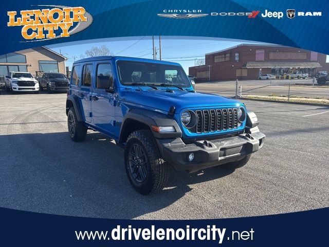Lenoir City Chrysler is proud to offer this terrific-looking and fun 2026 Jeep Wrangler in Hydro Blue Pearl Coat. This 2026 Jeep Wrangler has passed our comprehensive inspection and comes with the following features; Convenience Group (2-Door Passive Entry, Front Door Locks, Air Conditioning with Auto Temp Control, Air Filtering, Cluster 7.0" TFT Color Display, Emergency/Assistance Call, Heated Front Seats, Heated Steering Wheel, and Universal Garage Door Opener), Quick Order Package 24S Sport S (Advanced Brake Assist, Automatic Headlamps, Corning Gorilla Glass, Deep Tint Sunscreen Windows, Enhanced Adaptive Cruise Control, Full Speed Forward Collision Warning Plus, Power Heated Mirrors, Premium Wrapped Steering Wheel, Security Alarm, Sun Visors with Illuminated Vanity Mirrors, and Wheels: 17" x 7.5" Gray), 12.3" Touchscreen Display, 3.45 Overall Top Gear Ratio, 4-Wheel Disc Brakes, 4G LTE Wi-Fi Hot Spot, 8 Speakers, ABS brakes, Air Conditioning, AM/FM radio: SiriusXM with 360L, Apple CarPlay, Apple CarPlay/Android Auto, Aux Battery, Brake assist, Cloth Low-Back Bucket Seats, Compass, Connectivity - US/Canada, Delay-off headlights, Driver door bin, Driver vanity mirror, Dual front impact airbags, Dual front side impact airbags, Electronic Stability Control, For More Info, Call 800-643-2112, Front anti-roll bar, Front Bucket Seats, Front Center Armrest w/Storage, Front fog lights, Front reading lights, Google Android Auto, Illuminated entry, Integrated Center Stack Radio, Integrated roll-over protection, Low tire pressure warning, MOPAR All-Weather Floor Mats, Non-Lock Fuel Cap Without Discriminator, Normal Duty Suspension, Occupant sensing airbag, Outside temperature display, Overhead airbag, Panic alarm, ParkView Rear Back-Up Camera, Passenger door bin, Passenger vanity mirror, Power steering, Power Top Quarter Window Storage Bag, Power windows, Radio data system, Radio: Uconnect 5 with 12.3" Display, Rear anti-roll bar, Rear reading lights, Rear Window Defroster, Rear Window Wiper/Washer, Remote keyless entry, Removable Rear Quarter Windows, SiriusXM Radio Service, SiriusXM with 360L, Sky 1-Touch Power Top, Speed control, Split folding rear seat, Steering wheel mounted audio controls, Stop-Start Dual Battery System, Tachometer, Telescoping steering wheel, Tilt steering wheel, Traction control, Trip computer, Variably intermittent wipers, and Wheels: 17" x 7.5" Black Steel Styled.