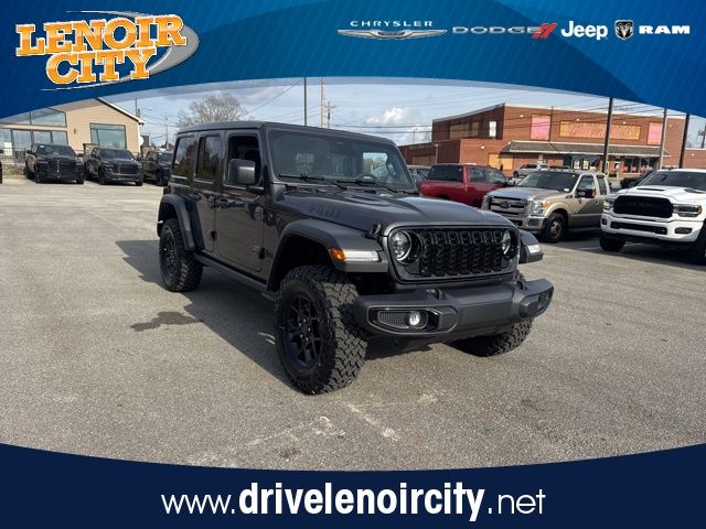 Lenoir City Chrysler is proud to offer this stunning-looking and fun 2026 Jeep Wrangler in Granite Crystal Metallic Clearcoat. This 2026 Jeep Wrangler has passed our comprehensive inspection and comes with the following features; Convenience Group (2-Door Passive Entry, Front Door Locks, Air Conditioning w/Auto Temperature Control, Air Filtering, Cluster 7.0" TFT Color Display, Emergency/Assistance Call, Heated Front Seats, Heated Steering Wheel, Remote Start System, and Universal Garage Door Opener), Quick Order Package 24W Willys (4-Wheel Drive Swing Gate Decal, 7 & 4 Pin Wiring Harness, Advanced Brake Assist, Automatic Headlamps, Auxiliary Switches, Black Grille, Class II Receiver Hitch, Conventional Differential Front Axle, Corning Gorilla Glass, Dana M210 Wide HD Tube Front Axle, Dana M220 Wide Rear Axle, Daytime Running Lamps LED Accents, Deep Tint Sunscreen Windows, E-Locker Rear Axle, Enhanced Adaptive Cruise Control, Front LED Fog Lamps, Full Speed Forward Collision Warning Plus, Injection Molded Black Rear Bumper, LED Premium Reflector Headlamps, Mold In Color Bumper w/Gloss Black, Molded in Color Rubicon Highline Flare, MOPAR All-Weather Floor Mats, Off-Road Plus Mode, Power Heated Mirrors, Premium Wrapped Steering Wheel, Security Alarm, Sun Visors w/Illuminated Vanity Mirrors, Wheels: 17" x 7.5" Painted Black, Willy's Suspension, and Willys Hood Decal), 4-Wheel Disc Brakes, 8 Speakers, ABS brakes, Air Conditioning, AM/FM radio: SiriusXM with 360L, Apple CarPlay/Android Auto, Aux Battery, Brake assist, Cloth Low-Back Bucket Seats, Compass, Delay-off headlights, Driver door bin, Driver vanity mirror, Dual front impact airbags, Dual front side impact airbags, Electronic Stability Control, Front anti-roll bar, Front Bucket Seats, Front Center Armrest w/Storage, Front fog lights, Front reading lights, Illuminated entry, Integrated roll-over protection, Low tire pressure warning, Non-Lock Fuel Cap w/o Discriminator, Normal Duty Suspension, Occupant sensing airbag, Outside temperature display, Overhead airbag, Panic alarm, ParkView Rear Back-Up Camera, Passenger door bin, Passenger vanity mirror, Power steering, Power Top Quarter Window Storage Bag, Power windows, Radio data system, Radio: Uconnect 5 w/12.3" Display, Rear anti-roll bar, Rear reading lights, Rear Window Defroster, Rear Window Wiper/Washer, Remote keyless entry, Removable Rear Quarter Windows, Sky 1-Touch Power Top, Speed control, Split folding rear seat, Steering wheel mounted audio controls, Stop-Start Dual Battery System, Tachometer, Telescoping steering wheel, Tilt steering wheel, Traction control, Trip computer, Variably intermittent wipers, and Wheels: 17" x 7.5" Black Steel Styled.