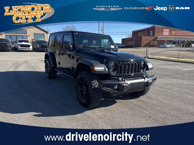 Lenoir City Chrysler is proud to offer this great-looking and fun 2026 Jeep Wrangler in Black Clearcoat. This 2026 Jeep Wrangler has passed our comprehensive inspection and comes with the following features; Convenience Group (2-Door Passive Entry, Front Door Locks, Air Conditioning with Auto Temp Control, Air Filtering, Cluster 7.0" TFT Color Display, Emergency/Assistance Call, Heated Front Seats, Heated Steering Wheel, and Universal Garage Door Opener), Quick Order Package 24W Willys (4-Wheel Drive Swing Gate Decal, 7 and 4 Pin Wiring Harness, Advanced Brake Assist, Automatic Headlamps, Auxiliary Switches, Black Grille, Class II Receiver Hitch, Conventional Differential Front Axle, Corning Gorilla Glass, Dana M210 Wide HD Tube Front Axle, Dana M220 Wide Rear Axle, Daytime Running Lamps LED Accents, Deep Tint Sunscreen Windows, E-Locker Rear Axle, Enhanced Adaptive Cruise Control, Front LED Fog Lamps, Full Speed Forward Collision Warning Plus, Injection Molded Black Rear Bumper, LED Premium Reflector Headlamps, Mold in Color Bumper with Gloss Black, Molded in Color Rubicon Highline Flare, MOPAR All-Weather Floor Mats, Off-Road Plus Mode, Power Heated Mirrors, Premium Wrapped Steering Wheel, Security Alarm, Sun Visors with Illuminated Vanity Mirrors, Wheels: 17" x 7.5" Painted Black, Willy's Suspension, and Willys Hood Decal), 12.3" Touchscreen Display, 4-Wheel Disc Brakes, 4G LTE Wi-Fi Hot Spot, 8 Speakers, ABS brakes, Air Conditioning, AM/FM radio: SiriusXM with 360L, Apple CarPlay, Apple CarPlay/Android Auto, Aux Battery, Black 3-Piece Hard Top, Brake assist, Cloth Low-Back Bucket Seats, Compass, Connectivity - US/Canada, Delay-off headlights, Driver door bin, Driver vanity mirror, Dual front impact airbags, Dual front side impact airbags, Electronic Stability Control, For More Info, Call 800-643-2112, Freedom Panel Storage Bag, Front anti-roll bar, Front Bucket Seats, Front Center Armrest w/Storage, Front fog lights, Front reading lights, Google Android Auto, Illuminated entry, Integrated Center Stack Radio, Integrated roll-over protection, Low tire pressure warning, Non-Lock Fuel Cap Without Discriminator, Normal Duty Suspension, Occupant sensing airbag, Outside temperature display, Overhead airbag, Panic alarm, ParkView Rear Back-Up Camera, Passenger door bin, Passenger vanity mirror, Power steering, Power windows, Radio data system, Radio: Uconnect 5 with 12.3" Display, Rear anti-roll bar, Rear reading lights, Rear Window Defroster, Rear Window Wiper/Washer, Remote keyless entry, SiriusXM Radio Service, SiriusXM with 360L, Speed control, Split folding rear seat, Steering wheel mounted audio controls, Stop-Start Dual Battery System, Tachometer, Telescoping steering wheel, Tilt steering wheel, Traction control, Trip computer, Variably intermittent wipers, and Wheels: 17" x 7.5" Black Steel Styled.