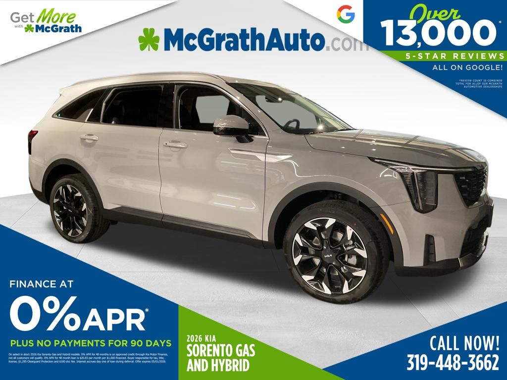 Prices may change at any time and are subject to availability and prior sale. Taxes, title, license fees, and a $180 documentation fee are not included. Pricing reflects all applicable rebates and incentives assigned to the dealer. Example payments are estimates; actual terms vary based on credit approval. APR and payment estimates apply to qualified buyers, not all buyers qualify for advertised rates. Factory cash incentives may not be combined with promotional APR. Fuel economy ratings and driving range figures are based on EPA estimates for new vehicles, and actual mileage and range may vary. Some in-stock vehicles may include a $1,295 Clear Guard Protection package By submitting your phone number online, you consent to occasional SMS or voice calls about our products and promotions; standard messaging rates may apply. Consult dealer for offer eligibility and other details. Factory MSRP is not the final advertised/asking price of the vehicle. Fuel economy figures are official EPA estimates and clearly labeled as such. Discount includes $1,500 McGrath Auto Trade in assistance discount, buyer must trade a 2009 or newer vehicle to qualify for this incentive. Price includes: $3000 - KFA Dealer Choice Program: $3000 discount and 5.25% APR for 36 months. $30.08 per $1000 financed. Available to well qualified buyers who finance through Kia Finance America. 506. Exp. 05/04/2026