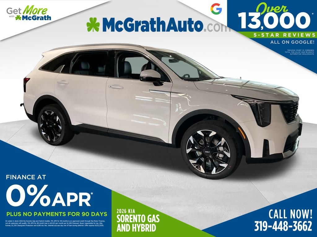 Prices may change at any time and are subject to availability and prior sale. Taxes, title, license fees, and a $180 documentation fee are not included. Pricing reflects all applicable rebates and incentives assigned to the dealer. Example payments are estimates; actual terms vary based on credit approval. APR and payment estimates apply to qualified buyers, not all buyers qualify for advertised rates. Factory cash incentives may not be combined with promotional APR. Fuel economy ratings and driving range figures are based on EPA estimates for new vehicles, and actual mileage and range may vary. Some in-stock vehicles may include a $1,295 Clear Guard Protection package By submitting your phone number online, you consent to occasional SMS or voice calls about our products and promotions; standard messaging rates may apply. Consult dealer for offer eligibility and other details. Factory MSRP is not the final advertised/asking price of the vehicle. Fuel economy figures are official EPA estimates and clearly labeled as such. Discount includes $1,500 McGrath Auto Trade in assistance discount, buyer must trade a 2009 or newer vehicle to qualify for this incentive. Price includes: $3000 - KFA Dealer Choice Program: $3000 discount and 5.25% APR for 36 months. $30.08 per $1000 financed. Available to well qualified buyers who finance through Kia Finance America. 506. Exp. 05/04/2026