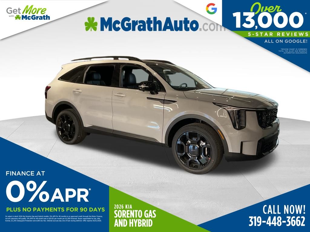 Prices may change at any time and are subject to availability and prior sale. Taxes, title, license fees, and a $180 documentation fee are not included. Pricing reflects all applicable rebates and incentives assigned to the dealer. Example payments are estimates; actual terms vary based on credit approval. APR and payment estimates apply to qualified buyers, not all buyers qualify for advertised rates. Factory cash incentives may not be combined with promotional APR. Fuel economy ratings and driving range figures are based on EPA estimates for new vehicles, and actual mileage and range may vary. Some in-stock vehicles may include a $1,295 Clear Guard Protection package By submitting your phone number online, you consent to occasional SMS or voice calls about our products and promotions; standard messaging rates may apply. Consult dealer for offer eligibility and other details. Factory MSRP is not the final advertised/asking price of the vehicle. Fuel economy figures are official EPA estimates and clearly labeled as such. Discount includes $1,500 McGrath Auto Trade in assistance discount, buyer must trade a 2009 or newer vehicle to qualify for this incentive. Price includes: $3000 - KFA Dealer Choice Program: $3000 discount and 5.25% APR for 36 months. $30.08 per $1000 financed. Available to well qualified buyers who finance through Kia Finance America. 506. Exp. 05/04/2026