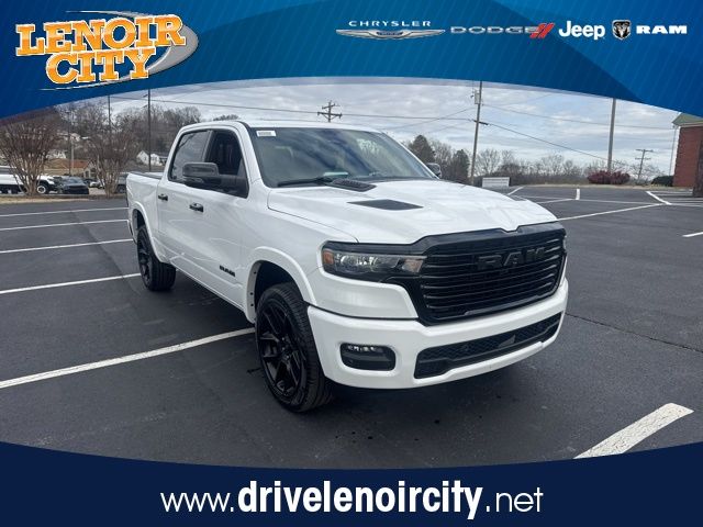 Lenoir City Chrysler is proud to offer this outstanding-looking 2026 Ram 1500 in Bright White Clearcoat. This 2026 Ram 1500 has passed our comprehensive inspection and comes with the following features; Laramie Level 2 Equipment Group (14.4" Touchscreen Display, 4G LTE Wi-Fi Hot Spot, Cluster 12" TFT Color Display, Connected Travel and Traffic Services, Connectivity - US/Canada, Front Passenger Interactive Display, GPS Navigation, Harman/Kardon 19 Speaker Premium Sound, Integrated Center Stack Radio, Integrated Voice Command with Bluetooth, Power Tailgate, Radio: Uconnect 5 Nav with 14.4" Display, Rain Sensitive Windshield Wipers, SiriusXM Radio Service, SiriusXM with 360L, and USB Host Flip), Night Edition (Accent Color Door Handles, Accent Color Premium Power Mirrors, Accent Color Tailgate Handle, Anti-Spin Differential Rear Axle, Auto Power-Folding Mirrors, Auto-Dimming Exterior Driver Mirror, Black Exterior Truck Badging, Black Headlamp Bezels, Black Interior Accents, Black Painted Exterior Mirrors Caps, Black Tail Lamp Bezels, Body Color Front Bumper, Body Color Rear Bumper with Step Pads, Convex Wide-Angle Exterior Mirror Insert, Dual Exhaust with Black Tips, Exterior Mirrors Approach Lamps, Exterior Mirrors Courtesy Lamps, Exterior Mirrors with Heating Element, Exterior Mirrors with Memory, Exterior Mirrors with Supplemental Signals, Grille Surround 3 Black Texture 2 Black, Pirelli Brand Tires, Proximity Approach/Departure Lamps, RAM Grille Badge - Black, Sport Performance Hood, and Wheels: 22" x 9" Forged Aluminum), Quick Order Package 21H Laramie, 10 Speakers, 4-Wheel Disc Brakes, ABS brakes, Active Noise Control System, Air Conditioning, Alloy wheels, AM/FM radio: SiriusXM with 360L, Apple CarPlay/Android Auto, Audio memory, Auto High-beam Headlights, Auto-dimming door mirrors, Auto-dimming Rear-View mirror, Automatic temperature control, Brake assist, Bumpers: chrome, Chrome Exterior Mirrors, Compass, Delay-off headlights, Dome Dual LED Reading Lamp, Driver door bin, Driver vanity mirror, Dual front impact airbags, Dual front side impact airbags, Dual-Pane Panoramic Sunroof, Electronic Stability Control, Front anti-roll bar, Front Bucket Seats, Front Center Armrest w/Storage, Front dual zone A/C, Front fog lights, Front reading lights, Front wheel independent suspension, Fully automatic headlights, Garage door transmitter, Heated door mirrors, Heated front seats, Heated rear seats, Heated steering wheel, Illuminated entry, Leather steering wheel, Leather Trimmed Bucket Seats, LED Dome/Reading Lamp, Low tire pressure warning, Manufacturer's Statement of Origin, Memory seat, MOPAR Front and Rear Rubber Floor Mats, Navigation System, Occupant sensing airbag, Off-Road Information Pages, Outside temperature display, Overhead airbag, Overhead console, Panic alarm, ParkView Rear Back-Up Camera, Passenger door bin, Passenger vanity mirror, Power door mirrors, Power driver seat, Power passenger seat, Power steering, Power windows, Radio data system, Radio: Uconnect 5 Navigation with 12.0" Display, RAM Grille Badge - Chrome, Rear anti-roll bar, Rear reading lights, Rear seat center armrest, Rear step bumper, Remote keyless entry, Security system, Speed control, Split folding rear seat, Steering wheel mounted audio controls, Tachometer, Telescoping steering wheel, Tilt steering wheel, Traction control, Trailer Brake Control, Trip computer, Turn signal indicator mirrors, Variably intermittent wipers, Ventilated front seats, Voltmeter, and Wheels: 20" x 9" Premium Paint/Polish.