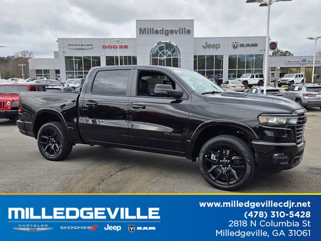 Five Star Milledgeville Chrysler Dodge Jeep Ram is proud to offer this handsome 2026 Ram 1500 in Diamond Black Crystal Pearlcoat. This 2026 Ram 1500 has passed our comprehensive inspection and comes with the following features; Laramie Level 2 Equipment Group (14.4" Touchscreen Display, 4G LTE Wi-Fi Hot Spot, Cluster 12" TFT Color Display, Connected Travel and Traffic Services, Connectivity - US/Canada, Front Passenger Interactive Display, GPS Navigation, Harman/Kardon 19 Speaker Premium Sound, Integrated Center Stack Radio, Integrated Voice Command with Bluetooth, Power Tailgate, Radio: Uconnect 5 Nav with 14.4" Display, Rain Sensitive Windshield Wipers, SiriusXM Radio Service, SiriusXM with 360L, and USB Host Flip), Night Edition (Accent Color Door Handles, Accent Color Premium Power Mirrors, Accent Color Tailgate Handle, Anti-Spin Differential Rear Axle, Auto Power-Folding Mirrors, Auto-Dimming Exterior Driver Mirror, Black Exterior Truck Badging, Black Headlamp Bezels, Black Interior Accents, Black Painted Exterior Mirrors Caps, Black Tail Lamp Bezels, Body Color Front Bumper, Body Color Rear Bumper with Step Pads, Convex Wide-Angle Exterior Mirror Insert, Dual Exhaust with Black Tips, Exterior Mirrors Approach Lamps, Exterior Mirrors Courtesy Lamps, Exterior Mirrors with Heating Element, Exterior Mirrors with Memory, Exterior Mirrors with Supplemental Signals, Grille Surround 3 Black Texture 2 Black, Pirelli Brand Tires, Proximity Approach/Departure Lamps, RAM Grille Badge - Black, Sport Performance Hood, and Wheels: 22" x 9" Forged Aluminum), Quick Order Package 21H Laramie, 10 Speakers, 3.55 Rear Axle Ratio, 4-Wheel Disc Brakes, ABS brakes, Active Noise Control System, Adjustable pedals, Air Conditioning, Alloy wheels, AM/FM radio: SiriusXM with 360L, Apple CarPlay/Android Auto, Audio memory, Auto High-beam Headlights, Auto-dimming door mirrors, Auto-dimming Rear-View mirror, Automatic temperature control, Brake assist, Bumpers: chrome, Chrome Exterior Mirrors, Compass, Delay-off headlights, Driver door bin, Driver vanity mirror, Dual front impact airbags, Dual front side impact airbags, Electronic Stability Control, Front anti-roll bar, Front Bucket Seats, Front Center Armrest w/Storage, Front dual zone A/C, Front fog lights, Front reading lights, Front wheel independent suspension, FUEL EFFICENT USED CARS, Fully automatic headlights, Garage door transmitter, Heated door mirrors, Heated front seats, Heated rear seats, Heated steering wheel, Illuminated entry, Leather steering wheel, Leather Trimmed Bucket Seats, LOW MILEAGE USED CARS, Low tire pressure warning, Manufacturer's Statement of Origin, Memory seat, MOPAR Front and Rear Rubber Floor Mats, MyFlexCare Service Plan, Navigation System, Occupant sensing airbag, Off-Road Information Pages, Outside temperature display, Overhead airbag, Overhead console, Panic alarm, ParkView Rear Back-Up Camera, Passenger door bin, Passenger vanity mirror, Pedal memory, Power door mirrors, Power driver seat, Power passenger seat, Power steering, Power windows, Radio data system, Radio: Uconnect 5 Navigation with 12.0" Display, RAM Grille Badge - Chrome, Rear anti-roll bar, Rear reading lights, Rear seat center armrest, Rear step bumper, RELIABLE USED CARS, Remote keyless entry, Security system, Speed control, Split folding rear seat, Steering wheel mounted audio controls, Tachometer, Telescoping steering wheel, Tilt steering wheel, Traction control, Trailer Brake Control, Trip computer, Turn signal indicator mirrors, USED CARS FOR SALE, Variably intermittent wipers, Ventilated front seats, Voltmeter, and Wheels: 20" x 9" Premium Paint/Polish.