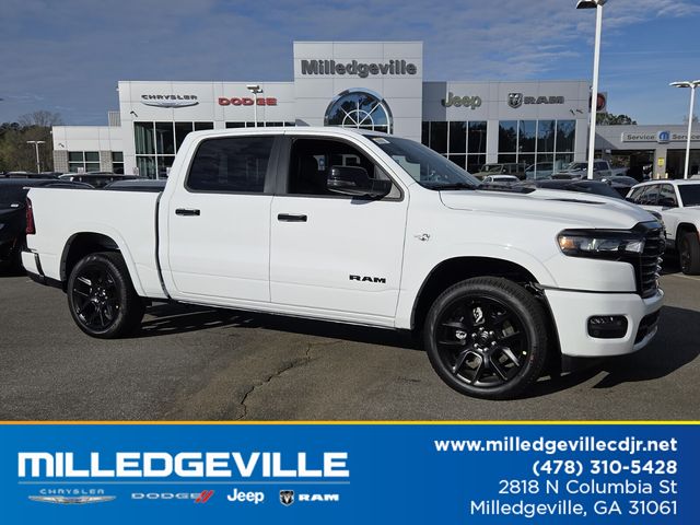 Five Star Milledgeville Chrysler Dodge Jeep Ram is proud to offer this good-looking 2026 Ram 1500 in Bright White Clearcoat. This 2026 Ram 1500 has passed our comprehensive inspection and comes with the following features; Laramie Level 2 Equipment Group (14.4" Touchscreen Display, 4G LTE Wi-Fi Hot Spot, Cluster 12" TFT Color Display, Connected Travel and Traffic Services, Connectivity - US/Canada, Front Passenger Interactive Display, GPS Navigation, Harman/Kardon 19 Speaker Premium Sound, Integrated Center Stack Radio, Integrated Voice Command with Bluetooth, Power Tailgate, Radio: Uconnect 5 Nav with 14.4" Display, Rain Sensitive Windshield Wipers, SiriusXM Radio Service, SiriusXM with 360L, and USB Host Flip), Night Edition (Accent Color Door Handles, Accent Color Premium Power Mirrors, Accent Color Tailgate Handle, Anti-Spin Differential Rear Axle, Auto Power-Folding Mirrors, Auto-Dimming Exterior Driver Mirror, Black Exterior Truck Badging, Black Headlamp Bezels, Black Interior Accents, Black Painted Exterior Mirrors Caps, Black Tail Lamp Bezels, Body Color Front Bumper, Body Color Rear Bumper with Step Pads, Convex Wide-Angle Exterior Mirror Insert, Dual Exhaust with Black Tips, Exterior Mirrors Approach Lamps, Exterior Mirrors Courtesy Lamps, Exterior Mirrors with Heating Element, Exterior Mirrors with Memory, Exterior Mirrors with Supplemental Signals, Grille Surround 3 Black Texture 2 Black, Pirelli Brand Tires, Proximity Approach/Departure Lamps, RAM Grille Badge - Black, Sport Performance Hood, and Wheels: 22" x 9" Forged Aluminum), Quick Order Package 27H Laramie, 10 Speakers, 4-Wheel Disc Brakes, ABS brakes, Active Noise Control System, Adjustable pedals, Air Conditioning, Alloy wheels, AM/FM radio: SiriusXM with 360L, Apple CarPlay/Android Auto, Audio memory, Auto High-beam Headlights, Auto-dimming door mirrors, Auto-dimming Rear-View mirror, Automatic temperature control, Brake assist, Bumpers: chrome, Chrome Exterior Mirrors, Compass, Delay-off headlights, Dome Dual LED Reading Lamp, Driver door bin, Driver vanity mirror, Dual front impact airbags, Dual front side impact airbags, Dual-Pane Panoramic Sunroof, Electronic Stability Control, Front anti-roll bar, Front Bucket Seats, Front Center Armrest w/Storage, Front dual zone A/C, Front fog lights, Front reading lights, Front wheel independent suspension, FUEL EFFICENT USED CARS, Fully automatic headlights, Garage door transmitter, Heated door mirrors, Heated front seats, Heated rear seats, Heated steering wheel, Illuminated entry, Leather steering wheel, Leather Trimmed Bucket Seats, LED Dome/Reading Lamp, LOW MILEAGE USED CARS, Low tire pressure warning, Memory seat, MOPAR Front and Rear Rubber Floor Mats, Navigation System, Occupant sensing airbag, Off-Road Information Pages, Outside temperature display, Overhead airbag, Overhead console, Panic alarm, ParkView Rear Back-Up Camera, Passenger door bin, Passenger vanity mirror, Pedal memory, Power door mirrors, Power driver seat, Power passenger seat, Power steering, Power windows, Radio data system, Radio: Uconnect 5 Navigation with 12.0" Display, RAM Grille Badge - Chrome, Rear anti-roll bar, Rear reading lights, Rear seat center armrest, Rear step bumper, RELIABLE USED CARS, Remote keyless entry, Security system, Speed control, Split folding rear seat, Steering wheel mounted audio controls, Tachometer, Telescoping steering wheel, Tilt steering wheel, Traction control, Trailer Brake Control, Trip computer, Turn signal indicator mirrors, USED CARS FOR SALE, Variably intermittent wipers, Ventilated front seats, Voltmeter, and Wheels: 20" x 9" Premium Paint/Polish.