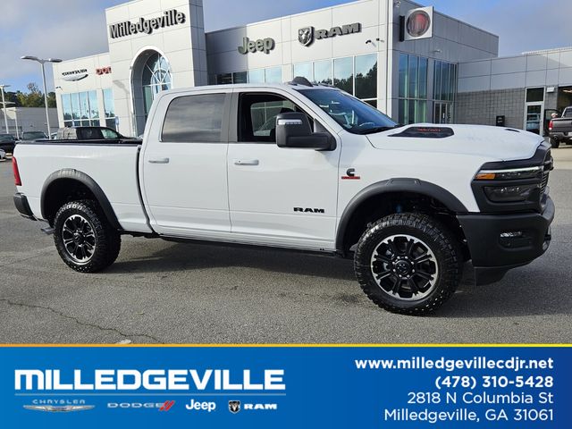 Five Star Milledgeville Chrysler Dodge Jeep Ram is proud to offer this charming 2026 Ram 2500 in Bright White Clearcoat. This 2026 Ram 2500 has passed our comprehensive inspection and comes with the following features; Quick Order Package 24R Rebel, Rebel Level 2 Equipment Group (115V Auxiliary Rear Power Outlet, 14.4" Touchscreen Display, 2 Way Rear Headrest Seat, 4 Way Front Headrests, 4G LTE Wi-Fi Hot Spot, Apple CarPlay, Auto Dim Exterior Mirror, Auto High Beam Headlamp Control, Auto Power-Folding Mirrors, Auto-Dimming Exterior Passenger Mirror, Black Exterior Mirrors, Body Color Door Handles, Bucket Seats, Connectivity - US/Canada, Disassociated Touchscreen Display, Dual Wireless Charging Pad, Emergency Vehicle Alert System (EVAS), Exterior Mirrors Courtesy Lamps, Folding Flat Load Floor Storage, For Details, Visit DriveUconnect.com, For More Info, Call 800-643-2112, Front Door Locks 2-Door Passive Entry, Front Passenger Interactive Display, Front Seat Back Map Pockets, Full Length Upgraded Floor Console, Google Android Auto, GPS Antenna Input, GPS Navigation, HD Radio, Heated Front Seats, Heated Second Row Seats, Heated Steering Wheel, High Back Seats, Leather Trimmed Bucket Seats (NL), Leather Wrapped Grab Handle, Leather Wrapped Shift Control, LED Bed Lighting, LED Interior Lighting, Mirror Running Lights, MOPAR Deployable Bed Step, Off-Road Info Pages, Overhead LED Lamps, Power 2-Way Driver Lumbar Adjust, Power 2-Way Passenger Lumbar Adjust, Power Adjust 8-Way Driver Seat, Power Adjust 8-Way Front Passenger Seat, Power Adjust Mirrors, Power Deployable Running Boards, Power Telescoping Mirrors, Power-Adjustable Convex Aux Mirrors, Premium Overhead Console, Radio/Driver Seat/Mirrors/Pedals Memory, Rain Sensitive Windshield Wipers, Rear 60/40 Folding Seat, Selectable Tire Fill Alert, SiriusXM Radio Service, Sport Performance Hood, Trailer Tow Pages, Universal Garage Door Opener, and Ventilated Front Seats), 4-Wheel Disc Brakes, 5th Wheel/Gooseneck Towing Prep Group, 6 Speakers, ABS brakes, Adjustable pedals, Air Conditioning, Alloy wheels, AM/FM radio: SiriusXM with 360L, Apple CarPlay/Android Auto, Auto-dimming Rear-View mirror, Automatic temperature control, Black Wheel Center Hub, Block heater, Brake assist, Cloth Heated Power Bench Seat, Compass, Dash Pass Thru Wire Circuits, Delay-off headlights, Driver door bin, Dual front impact airbags, Dual front side impact airbags, Electronic Stability Control, Front anti-roll bar, Front Center Armrest w/Storage, Front dual zone A/C, Front fog lights, Front reading lights, FUEL EFFICENT USED CARS, Fully automatic headlights, Heated door mirrors, Heated front seats, Heated steering wheel, Illuminated entry, Leather steering wheel, LOW MILEAGE USED CARS, Low tire pressure warning, Manufacturer's Statement of Origin, MyFlexCare Service Diesel, Navigation System, Occupant sensing airbag, Outside temperature display, Overhead airbag, Overhead console, Panic alarm, ParkView Rear Back-Up Camera, Passenger door bin, Passenger vanity mirror, Power door mirrors, Power driver seat, Power steering, Power windows, Radio data system, Rear anti-roll bar, Rear seat center armrest, Rear step bumper, Rear window defroster, RELIABLE USED CARS, Remote keyless entry, Security system, Speed control, Split folding rear seat, Steering wheel mounted audio controls, Tachometer, Tilt steering wheel, Traction control, Trip computer, Turn signal indicator mirrors, USED CARS FOR SALE, Variably intermittent wipers, Vendor Painted Cargo Box, Vendor Painted Cargo Box Tracking, Voltmeter, and Wheels: 20" x 8.0" Black Diamond Cut AluminuM.