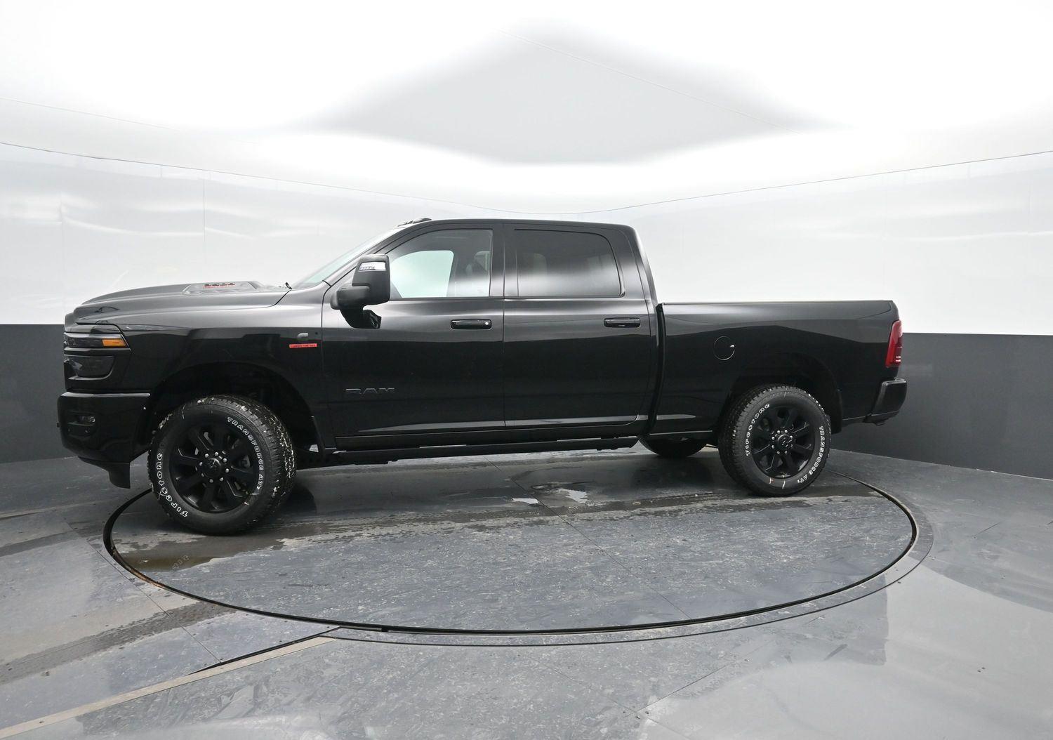 ENGINE: 6.7L I6 CUMMINS HO TURBO DIESEL, TRANSMISSION: 8-SPEED TORQUEFLITE HD AUTOMATIC, QUICK ORDER PACKAGE 24H LARAMIE, 3.42 AXLE RATIO, WHEELS: 20" X 8.0" BLACK PAINTED ALUMINUM, TIRES: LT285/60R20E OWL ON/OFF ROAD, DIAMOND BLACK CRYSTAL PEARLCOAT, BLACK, LEATHER TRIMMED BUCKET SEATS, GVWR: 11,800 LB, COLD WEATHER GROUP, NIGHT EDITION, LARAMIE LEVEL 2 PLUS EQUIPMENT GROUP, ENGINE BLOCK HEATER, 5TH WHEEL/GOOSENECK TOWING PREP GROUP, POWER SUNROOF, FRONT LICENSE PLATE BRACKET, POWER DEPLOYABLE RUNNING BOARDS, CLEARANCE LAMPS, RADIO: UCONNECT 5 NAV W/14.4" DISPLAY, MOPAR FRONT & REAR RUBBER FLOOR MATS, CTR STOP LAMP W/CARGO VIEW CAMERA, I/P MOUNTED AUXILIARY SWITCHES