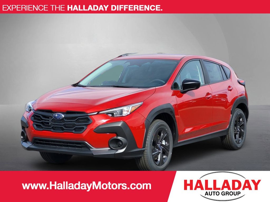 See what's behind you with the back up camera on this model. It has automated speed control that adjusts to maintain a safe following distance, enhancing highway driving convenience. It features a hands-free Bluetooth phone system. The Subaru Crosstrek offers Apple CarPlay for seamless connectivity. This vehicle comes equipped with Android Auto for seamless smartphone integration on the road. This small suv is equipped with the latest generation of XM/Sirius Radio. The Subaru Crosstrek stays safely in its lane with Lane Keep Assist. This Subaru Crosstrek offers Automatic Climate Control for personalized comfort. It is equipped with all wheel drive. Control your garage door with its built in HomeLink System. The vehicle excites both driver and bystanders with a polished red exterior with racy lines. This model has a 4 Cyl, 2.5L high output engine. Set the temperature exactly where you are most comfortable in this vehicle. The fan speed and temperature will automatically adjust to maintain your preferred zone climate.