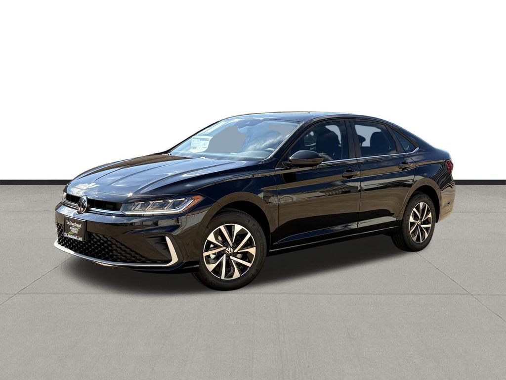 Deep Black 2026 Volkswagen Jetta 1.5T S FWD 8-Speed Automatic with Tiptronic 1.5L I-4 DI DOHC Turbocharged Titan Black Cloth.