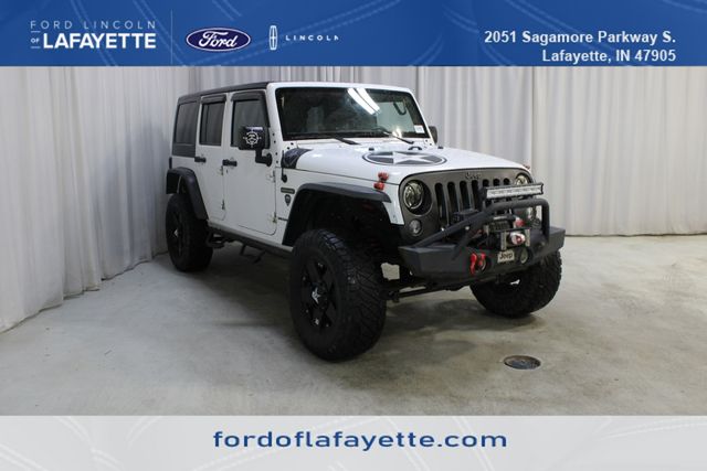 CLEAN CarFax, Auto-Dimming Mirror w/Reading Lamp, Black/Chrome Screws Fuel Filler Door, Body Color Fender Flares, Class II Receiver Hitch, Connectivity Group, Deep Tint Sunscreen Windows, Driver Height Adjuster Seat, Freedom Edition Badging, Freedom Package Decals, Front 1-Touch Down Power Windows, GPS Navigation, Granite Crystal Jeep Badge, Iron Gray Interior Accents, Leather Seat w/Cloth (Sedoso Fabric) (DISC), Low Gloss Black Wrangler Decal, Mid Gloss Granite Crystal Appliques, Mid Gloss Granite Crystal Grille, MOPAR Black Tail Lamp Guards, MOPAR Coat Hooks and Grab Handles, MOPAR Slush Mats, Oscar Mike Badge, Pantone Trail Rated Badge, Power Convenience Group, Power Heated Mirrors, Power Locks, Premium Black Sunrider Soft Top, Quick Order Package 23F Freedom (DISC), Quick Order Package 24F Freedom (DISC), Remote Keyless Entry, Remote USB Port, Security Alarm, Silver Interior Accents, Sunrider Soft Top, Tire Pressure Monitoring Display, Trailer Tow Group, Trailer Tow w/4-Pin Connector Wiring, Tubular Side Steps, Uconnect Voice Command w/Bluetooth, Vehicle Information Center, Wheels: 17" x 7.5" 5-Spoke Aluminum (DISC). Bright White Clearcoat 2016 Jeep Wrangler Unlimited Freedom Edition 3.6L V6 24V VVT 4WD 5-Speed Automatic
