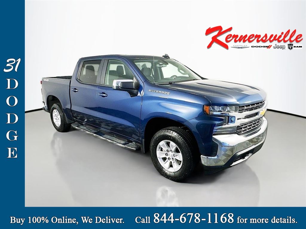 This 2021 Chevrolet Silverado 1500 LT Crew Cab 4WD in Northsky Blue Metallic delivers powerful V8 performance, advanced trailering capability, and modern connectivity in a versatile full size pickup. Powered by the proven 5.3L EcoTec3 V8 engine paired with an 8 speed automatic transmission and 3.23 rear axle ratio, this Silverado provides strong acceleration and confident towing performance. Equipped with an Autotrac transfer case, auto locking rear differential, StabiliTrak with trailer sway control and hill start assist, trailering package with hitch guidance, and integrated trailer brake controller, this truck is built for work and recreation alike. Inside the spacious Crew Cab, enjoy dual zone automatic climate control, a 10 way power adjustable driver seat with lumbar support, heated front 40 20 40 bench seat with covered armrest and underseat storage, heated leather wrapped steering wheel with audio controls, rear 60 40 folding bench seat, carpeted flooring with rubberized vinyl floor mats, rear seat reminder, and keyless open lock and start. Technology highlights include Chevrolet Infotainment 3 with an 8 inch diagonal color touchscreen, Bluetooth audio streaming, voice command passthrough to phone, wired Android Auto and Apple CarPlay capability, SiriusXM capability, USB ports for first and second rows, color driver information center, and remote vehicle start for added convenience. Exterior features such as LED reflector headlamps, LED signature daytime running lamps, LED cargo area lighting, EZ lift power lock and release tailgate, cornerstep rear bumper, cargo bed rail protectors, 12 tie downs in the cargo bed, front recovery hooks, power adjustable heated mirrors, and the Bed Protection Package with Chevytec spray on bedliner enhance both durability and style. Combining legendary Chevy truck strength, advanced safety systems including rear vision camera and tire pressure monitoring with tire fill alert, and everyday comfort, this Silverado LT 4WD is ready for the job site, towing, and daily driving with confidence.