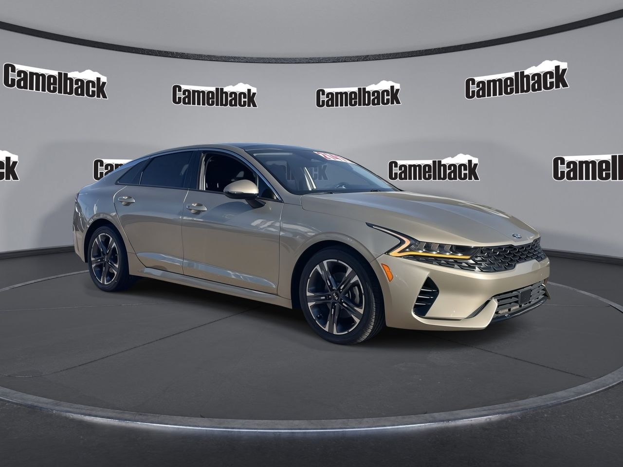 Experience the Thrill of the Drive: Discover the 2021 Kia K5 EX in Crystal Beige, Where Style Meets Advanced Safety and Cutting-Edge Technology. Step into the 2021 Kia K5 EX and discover a driving experience that is both dynamic and refined. With its sleek Crystal Beige exterior and panoramic roof, this sedan exudes sophistication at every angle. Under the hood, the turbocharged 1.6L I4 engine paired with an 8-speed automatic transmission delivers a smooth yet spirited performance, ensuring every journey is as exciting as the destination. Safety is paramount in the Kia K5 EX, featuring an array of advanced systems like Blind Spot Monitor, Lane Keeping Assist, and Front Collision Mitigation. These technologies work seamlessly to keep you and your passengers protected, providing peace of mind on every drive. The intuitive Driver Monitoring system further enhances safety by alerting you to potential distractions. Inside, the K5 EX offers premium comfort with its power-adjustable, heated, and cooled front seats, wrapped in luxurious synthetic leather. The smart device integration and WiFi hotspot ensure you stay connected, while the remote engine start and hands-free liftgate add convenience to your daily routine. Experience the perfect blend of style, technology, and safety in the 2021 Kia K5 EX. Be sure to call or visit Camelback Hyundai Kia to discover more. Your new favorite vehicle awaits - don't let someone else drive it home!