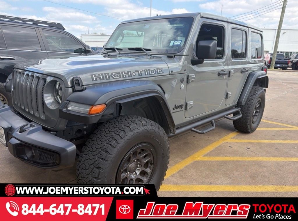 **ONE OWNER**, **CLEAN CARFAX!**, **BLUE TOOTH**, **BACK UP CAMERA**, **ALLOY WHEELS**. 2023 Jeep Wrangler High Tide Sting-Gray Clearcoat 4WD 8-Speed Automatic CARFAX One-Owner. 19/24 City/Highway MPG 3.6L V6 24V VVT JOE MYERS TOYOTA NAMED A CARFAX TOP-RATED DEALER SEVEN YEARS IN A ROW!!! COME EXPERIENCE JOE MYERS TOYOTA**SAVE Time and $Money, FRESH QUALITY INVENTORY EVERYDAY, DAILY SPECIALS!! @JOE MYERS TOYOTA WE ARE HERE FOR YOU!!! Se Habla EspanÌ?ol, Financing Available, VOLUME DEALER, BEST DEALS**Call Now! Recent Arrival! All pricing is subject to change and may not include dealer added options.. Joe Myers Toyota is proudly serving Houston, Spring, Katy, Cypress, 290 HWY, FM1960, area and follow communities, Northwest Freeway, Cy Fair, Jersey Village, Tomball, The Woodlands, North Freeway, Klein, I-10, Katy, Missouri City, Sugarland, Waller, Brenham, Hempstead, Richmond, and College Station.