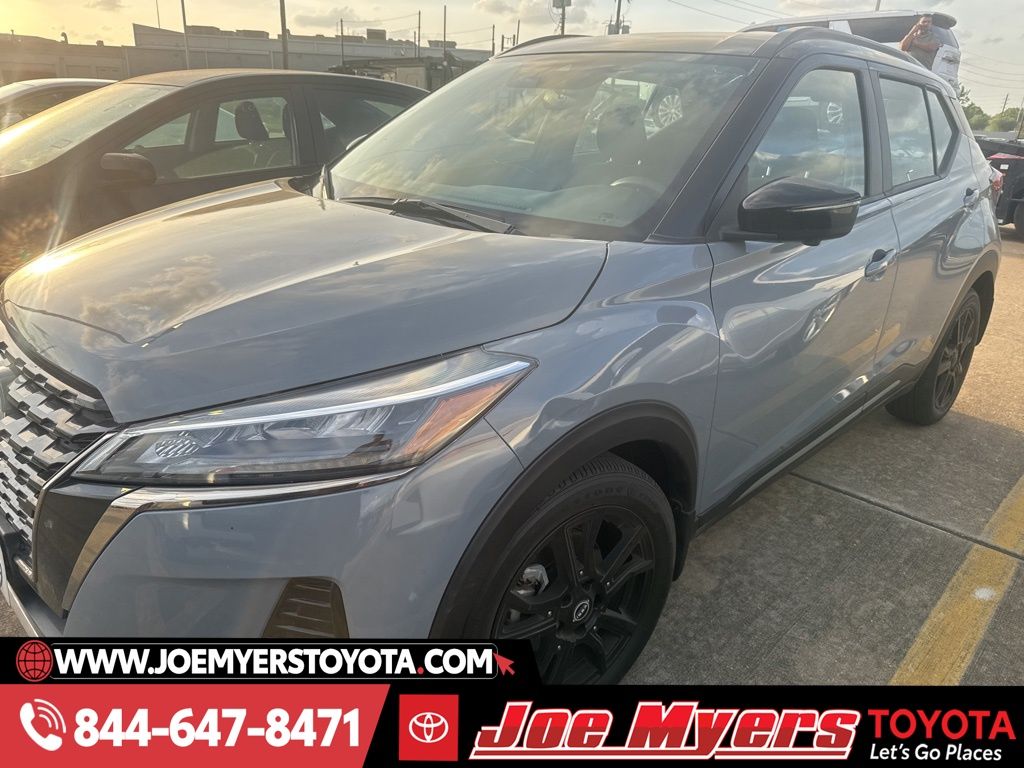 **ONE OWNER**, **CLEAN CARFAX!**, **BLUE TOOTH**, **BACK UP CAMERA**. 2023 Nissan Kicks SR Gray/Super Black FWD CVT with Xtronic CARFAX One-Owner. 31/36 City/Highway MPG 1.6L 4-Cylinder DOHC 16V JOE MYERS TOYOTA NAMED A CARFAX TOP-RATED DEALER SEVEN YEARS IN A ROW!!! COME EXPERIENCE JOE MYERS TOYOTA**SAVE Time and $Money, FRESH QUALITY INVENTORY EVERYDAY, DAILY SPECIALS!! @JOE MYERS TOYOTA WE ARE HERE FOR YOU!!! Se Habla EspanÌ?ol, Financing Available, VOLUME DEALER, BEST DEALS**Call Now! Recent Arrival! Odometer is 21596 miles below market average! 31/36 City/Highway MPG All pricing is subject to change and may not include dealer added options.. Joe Myers Toyota is proudly serving Houston, Spring, Katy, Cypress, 290 HWY, FM1960, area and follow communities, Northwest Freeway, Cy Fair, Jersey Village, Tomball, The Woodlands, North Freeway, Klein, I-10, Katy, Missouri City, Sugarland, Waller, Brenham, Hempstead, Richmond, and College Station.