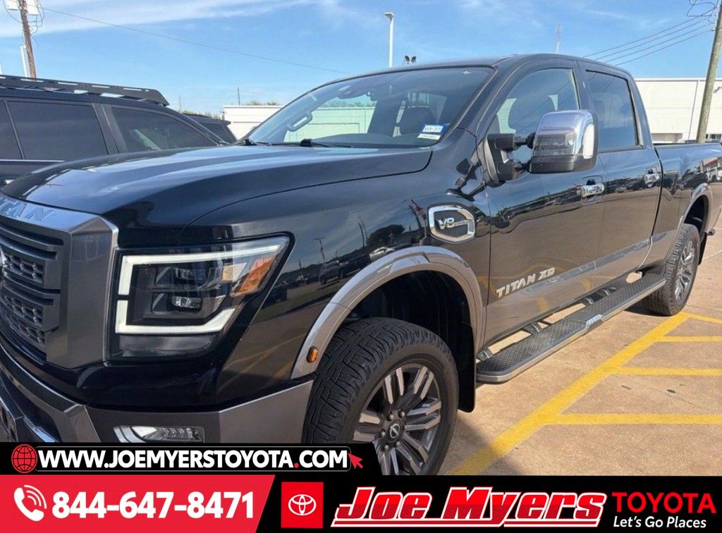 **ONE OWNER**, **CLEAN CARFAX!**, **BLUE TOOTH**, **BACK UP CAMERA**, **LEATHER INTERIOR**, **ALLOY WHEELS**. 2023 Nissan Titan XD Platinum Reserve Super Black 4WD 9-Speed Automatic CARFAX One-Owner. 5.6L V8 DOHC 32V Federal 400hp JOE MYERS TOYOTA NAMED A CARFAX TOP-RATED DEALER SEVEN YEARS IN A ROW!!! COME EXPERIENCE JOE MYERS TOYOTA**SAVE Time and $Money, FRESH QUALITY INVENTORY EVERYDAY, DAILY SPECIALS!! @JOE MYERS TOYOTA WE ARE HERE FOR YOU!!! Se Habla EspanÌ?ol, Financing Available, VOLUME DEALER, BEST DEALS**Call Now! Recent Arrival! All pricing is subject to change and may not include dealer added options.. Joe Myers Toyota is proudly serving Houston, Spring, Katy, Cypress, 290 HWY, FM1960, area and follow communities, Northwest Freeway, Cy Fair, Jersey Village, Tomball, The Woodlands, North Freeway, Klein, I-10, Katy, Missouri City, Sugarland, Waller, Brenham, Hempstead, Richmond, and College Station.