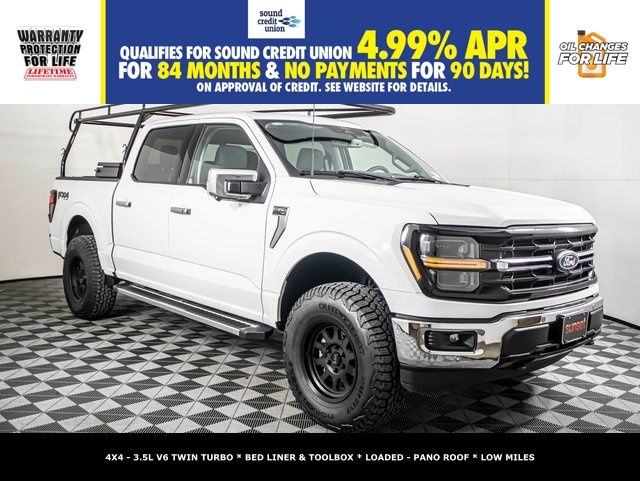 This locally owned, one-owner 2024 Ford F-150 XLT has just **3,000 miles** — essentially barely broken in — and comes loaded with premium packages, FX4 capability, and an overhead ladder rack already installed for added utility. Even better, it includes **Warranty Protection for Life** and **Oil Changes for Life**, giving you the long-term peace of mind that only Sunset Ford can offer.