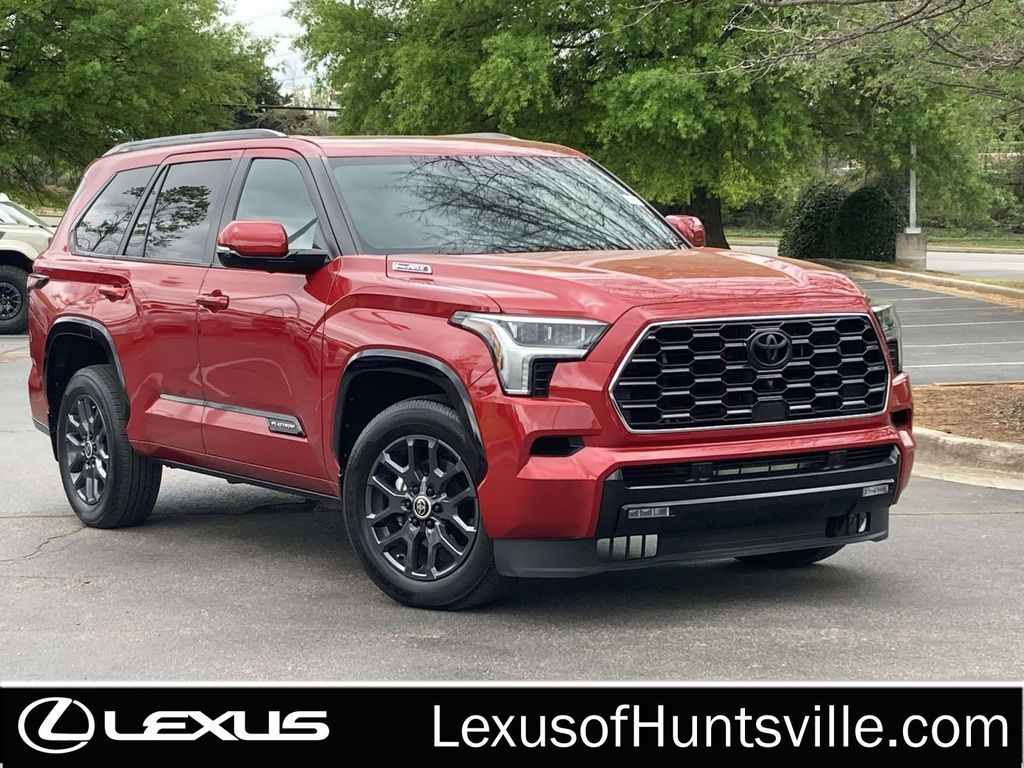 Recent Arrival! Lexus Of Huntsville is pleased to offer this 2024 Toyota Sequoia. This Platinum Sequoia is beautifully finished in Red and complemented by Black Leather. V6 Hybrid, 10-Speed Automatic, and 4WD gives you an amazing driving experience along with an impressive Fuel efficiency rating. 19/22 City/Highway MPG