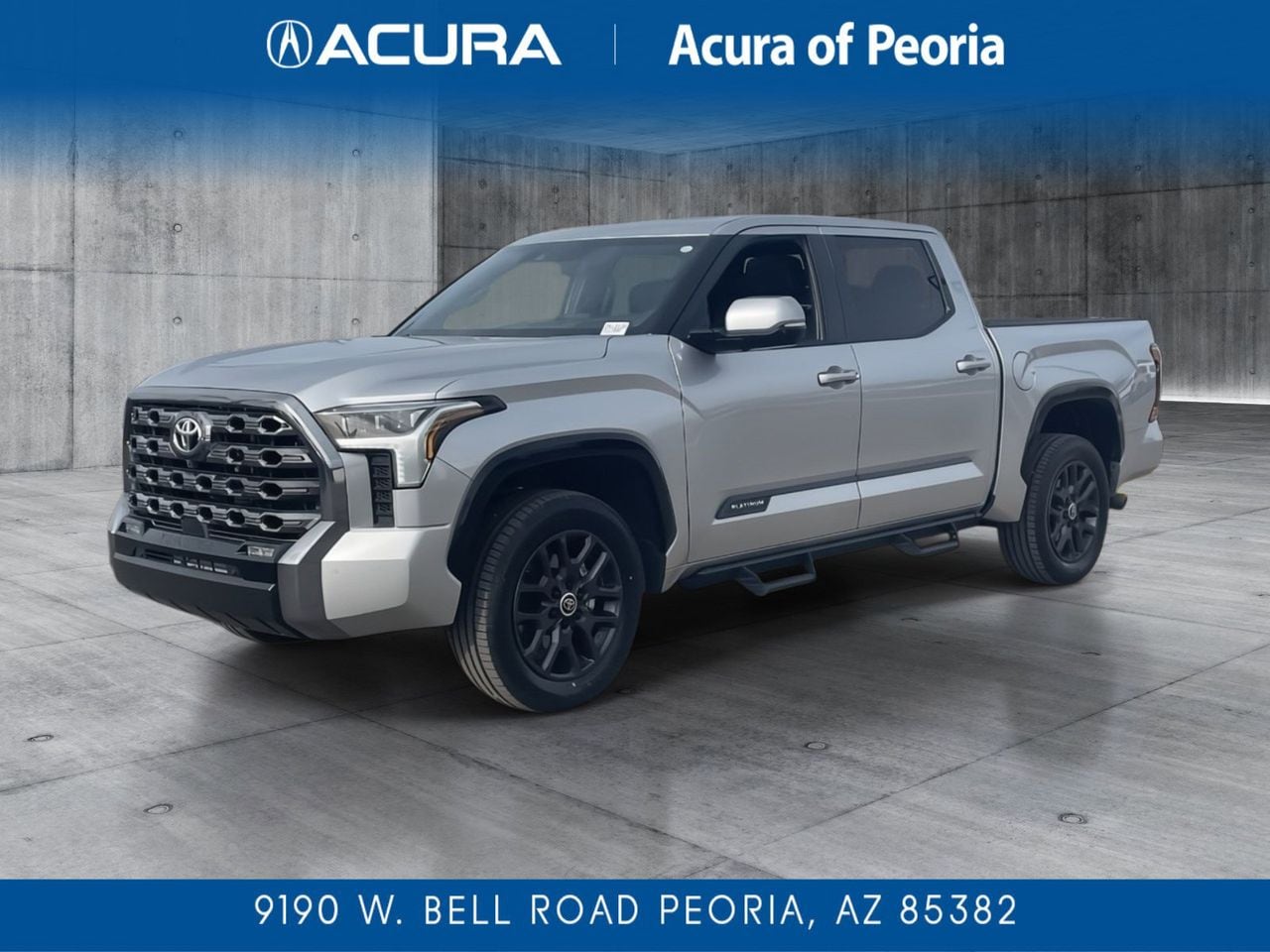 The Pinnacle of Power: 2024 Toyota Tundra Platinum! Get ready to dominate the road in this breathtaking **Silver 2024 Toyota Tundra Platinum**! As a **CARFAX One-Owner** arrival with rugged **4WD*, this truck is the ultimate blend of brute strength and sophisticated luxury, exclusively available at our dealership. Under the hood, the **i-FORCE Twin-Turbo V6** engine unleashes a massive **389 horsepower**, giving you a towing capacity of up to **11,380 lbs** to haul your boat or trailer with ease. Inside, youâ??ll experience a 'mobile sanctuary' featuring **premium leather-trimmed seats**, a power **panoramic sunroof**, and a massive **14-inch Toyota Audio Multimedia touchscreen** paired with a 12-speaker **JBL® Premium Audio** system. With advanced safety like **Toyota Safety Senseâ?¢ 2.5** and a 360-degree **Panoramic View Monitor**, youâ??ll drive with total peace of mind. This Tundra isn't just a vehicle itâ??s the elite upgrade your lifestyle deserves. **Don't waitâ?'this Platinum edition is a rare find! Visit us today for a test drive!**
