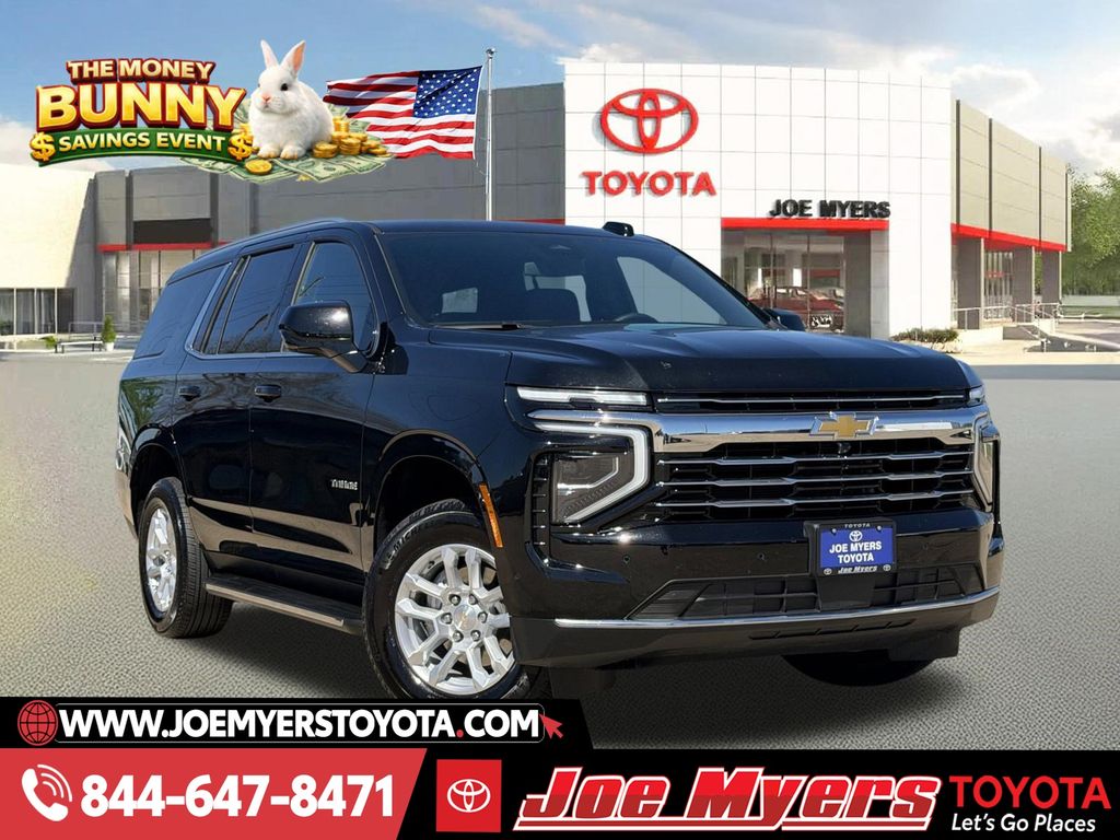 **ONE OWNER**, **CLEAN CARFAX!**, **APPLE CAR PLAY**, ANDROID AUTO, **BLUE TOOTH**, **BACK UP CAMERA**, **LEATHER INTERIOR**, **ALLOY WHEELS**, **3RD ROW SEATING**, 4WD, Jet Black w/Leather-Appointed Seat Trim. 2025 Chevrolet Tahoe LT 4WD Black 4WD 10-Speed Automatic with Overdrive 15/19 City/Highway MPG EcoTec3 5.3L V8 JOE MYERS TOYOTA NAMED A CARFAX TOP-RATED DEALER SEVEN YEARS IN A ROW!!! COME EXPERIENCE JOE MYERS TOYOTA**SAVE Time and $Money, FRESH QUALITY INVENTORY EVERYDAY, DAILY SPECIALS!! @JOE MYERS TOYOTA WE ARE HERE FOR YOU!!! Se Habla EspanÌ?ol, Financing Available, VOLUME DEALER, BEST DEALS**Call Now! Recent Arrival! All pricing is subject to change and may not include dealer added options.. Joe Myers Toyota is proudly serving Houston, Spring, Katy, Cypress, 290 HWY, FM1960, area and follow communities, Northwest Freeway, Cy Fair, Jersey Village, Tomball, The Woodlands, North Freeway, Klein, I-10, Katy, Missouri City, Sugarland, Waller, Brenham, Hempstead, Richmond, and College Station.