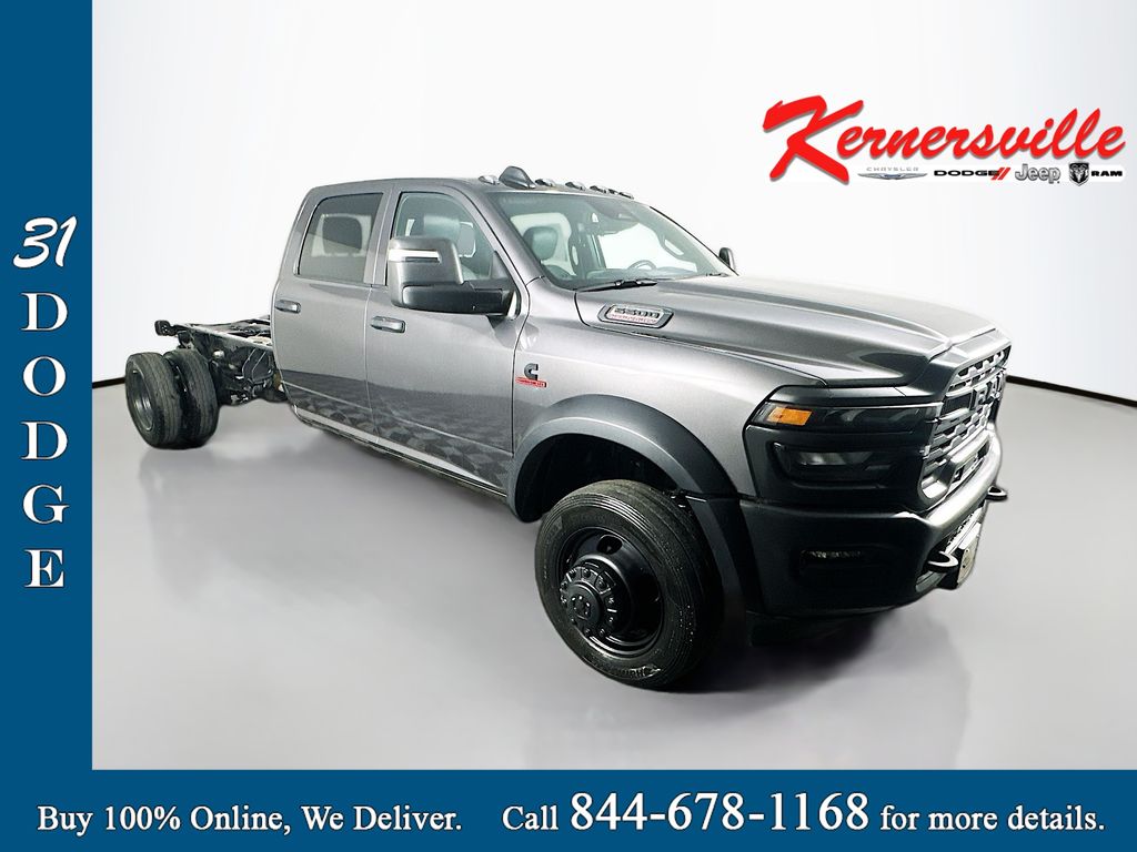 This 2025 Ram 5500 Chassis Tradesman Crew Cab 84 inch cab to axle 4X4 is built for serious upfitting, towing, and jobsite dependability with heavy duty capability and modern driver assistance. Power comes from the legendary 6.7L I6 Cummins Turbo Diesel paired with an 8 Speed TorqueFlite HD automatic transmission, delivering confident performance for work fleets, commercial builds, and demanding loads. Stay protected with adaptive cruise control with stop, full speed forward collision warning plus, pedestrian and cyclist emergency braking, Ready Alert Braking, anti lock 4 wheel disc brakes, electronic stability control, and an anti spin differential rear axle for added traction. This truck is engineered for vocational equipment with right and left power take off plus split shaft capability power take off, an upfitter electronic module, and instrument panel auxiliary switches to simplify aftermarket installs. Tow with confidence using the Max Tow Package, electric shift on the fly transfer case, and a 7 pin trailer wiring harness, while dual fuel tanks help extend your range between fill ups. Inside, you get a smart and comfortable workspace with Uconnect 5 Nav on a 12 inch touchscreen display, integrated voice command, a full function media hub with USB and aux, remote start, push button start, dual zone automatic temperature control, power adjustable heated telescoping mirrors with convex auxiliaries, a digital rear view mirror, and a rear power sliding window. With practical exterior details like automatic headlamps, daytime running headlamps, clearance lamps, and a full size spare tire, this Ram 5500 Tradesman is an ideal platform for contractors, landscapers, service bodies, and commercial buyers searching for a diesel 4X4 chassis cab ready to get to work.