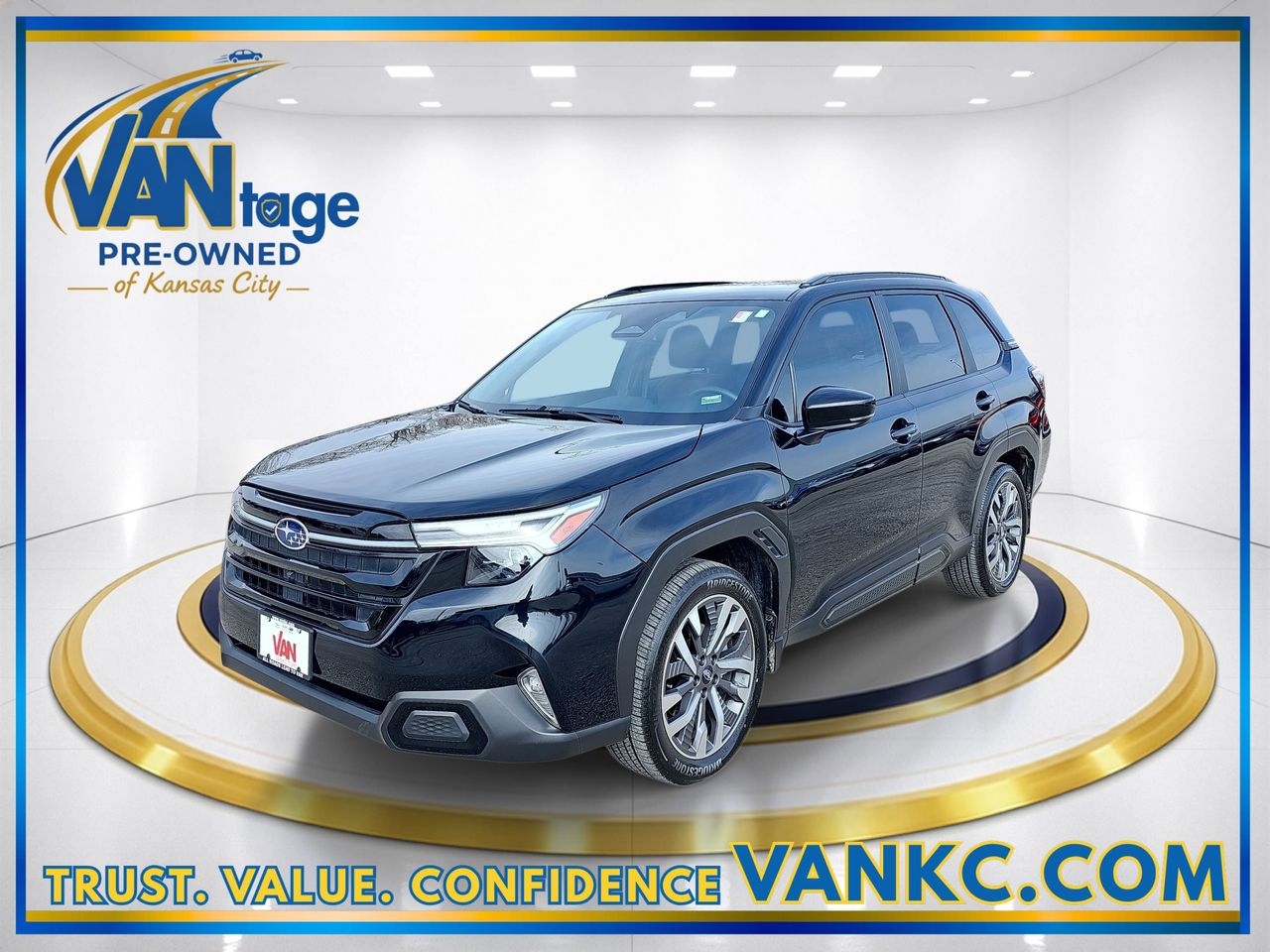 Discover the perfect blend of capability, comfort, and style with the 2025 Subaru Forester Touring. This meticulously maintained, Certified Pre-Owned Forester boasts a sleek black exterior and a host of premium features that elevate your driving experience. - Navigation System - Auto-Dimming Exterior Mirror w/Approach Light - Rear Bumper Cover - Splash Guards - All-Weather Floor Liners - LED Upgrade - Rear Seatback Protector - Cargo Tray The Forester Touring's impressive 2.5L 4-cylinder DOHC 16V engine, paired with Subaru's renowned Lineartronic CVT and Symmetrical All-Wheel Drive, delivers an exceptional blend of power and efficiency, with an EPA-estimated 25 MPG in the city and 32 MPG on the highway. Indulge in the comfort and convenience of this Forester's well-appointed interior, featuring 11 premium harman/kardon® speakers, a panoramic moonroof, a power liftgate, and heated and ventilated front seats. The Subaru 11.6' Multimedia Navigation System and STARLINK connectivity keep you connected and informed on the go. This Certified Pre-Owned Forester Touring comes with a comprehensive suite of safety and driver-assistance features, including Eyesight Driver Assist Technology, Rear Cross-Traffic Alert, and Blind-Spot Detection, providing you and your loved ones with added peace of mind. - 152 Point Inspection - Roadside Assistance - Warranty Deductible: $0 - Transferable Warranty - Vehicle History - Powertrain Limited Warranty: 84 Month/100,000 Mile (whichever comes first) from original in-service date - SiriusXM 3-Month trial subscription, $500 Owner Loyalty coupon 1 year trial subscription to STARLINK Experience the exceptional quality, performance, and value of this 2025 Subaru Forester Touring. Schedule a test drive today and discover why this Certified Pre-Owned Forester is the perfect choice for your next adventure.