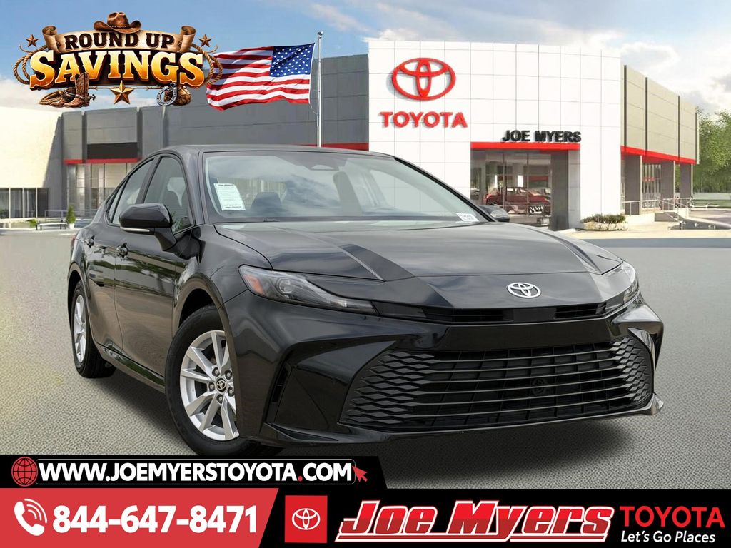**ONE OWNER**, **CLEAN CARFAX!**, **APPLE CAR PLAY**, ANDROID AUTO, **BLUE TOOTH**, **FORWARD COLLISION WARNING**, **LANE ASSIST / LANE DEPATURE**, **BACK UP CAMERA**, **ALLOY WHEELS**, 2.5L 4-Cylinder 16V DOHC, Black w/Fabric Seat Trim. 2025 Toyota Camry LE Midnight Black Metallic FWD eCVT CARFAX One-Owner. 2.5L 4-Cylinder 16V DOHC JOE MYERS TOYOTA NAMED A CARFAX TOP-RATED DEALER SEVEN YEARS IN A ROW!!! COME EXPERIENCE JOE MYERS TOYOTA**SAVE Time and $Money, FRESH QUALITY INVENTORY EVERYDAY, DAILY SPECIALS!! @JOE MYERS TOYOTA WE ARE HERE FOR YOU!!! Se Habla EspanÌ?ol, Financing Available, VOLUME DEALER, BEST DEALS**Call Now! Recent Arrival! All pricing is subject to change and may not include dealer added options.. Joe Myers Toyota is proudly serving Houston, Spring, Katy, Cypress, 290 HWY, FM1960, area and follow communities, Northwest Freeway, Cy Fair, Jersey Village, Tomball, The Woodlands, North Freeway, Klein, I-10, Katy, Missouri City, Sugarland, Waller, Brenham, Hempstead, Richmond, and College Station.