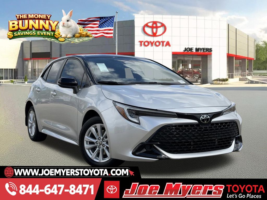 **ONE OWNER**, **CLEAN CARFAX!**, **BLUE TOOTH**, **BACK UP CAMERA**, **ALLOY WHEELS**. 2025 Toyota Corolla Hatchback SE Classic Silver Metallic/Midnight Black Metallic FWD CVT CARFAX One-Owner. 32/41 City/Highway MPG 2.0L I4 JOE MYERS TOYOTA NAMED A CARFAX TOP-RATED DEALER SEVEN YEARS IN A ROW!!! COME EXPERIENCE JOE MYERS TOYOTA**SAVE Time and $Money, FRESH QUALITY INVENTORY EVERYDAY, DAILY SPECIALS!! @JOE MYERS TOYOTA WE ARE HERE FOR YOU!!! Se Habla EspanÌ?ol, Financing Available, VOLUME DEALER, BEST DEALS**Call Now! Recent Arrival! 32/41 City/Highway MPG All pricing is subject to change and may not include dealer added options.. Joe Myers Toyota is proudly serving Houston, Spring, Katy, Cypress, 290 HWY, FM1960, area and follow communities, Northwest Freeway, Cy Fair, Jersey Village, Tomball, The Woodlands, North Freeway, Klein, I-10, Katy, Missouri City, Sugarland, Waller, Brenham, Hempstead, Richmond, and College Station.