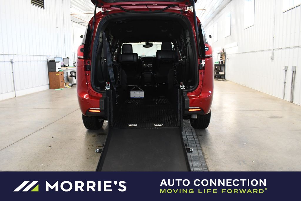 THIS VEHICLE NICELY EQUIPPED WITH : Quick Order Package 27L, 10.1" Touchscreen Display, 17" x 7.0" Aluminum Wheels, 3.25 Axle Ratio, 3rd row seats: split-bench, 4-Wheel Disc Brakes, 4G LTE Wi-Fi Hot Spot, 6 Speakers, ABS brakes, Air Conditioning, Alloy wheels, AM/FM radio: SiriusXM, Apple CarPlay, Apple CarPlay/Android Auto, Auto-dimming Rear-View mirror, Automatic temperature control, Black Seats, Brake assist, Bumpers: body-color, Caprice Leatherette Bucket Seats, Compass, Connectivity - US/Canada, Delay-off headlights, Disassociated Touchscreen Display, Driver door bin, Driver vanity mirror, Driver's Seat Mounted Armrest, Dual front impact airbags, Dual front side impact airbags, Electronic Stability Control, Emergency communication system: Chrysler Connect, For Details, Visit DriveUconnect.com, Four wheel independent suspension, Front anti-roll bar, Front Bucket Seats, Front dual zone A/C, Front fog lights, Front reading lights, Fully automatic headlights, Garage door transmitter, Google Android Auto, GPS Antenna Input, Heated door mirrors, Heated front seats, Heated steering wheel, Illuminated entry, Integrated Active Noise Cancellation, Integrated Center Stack Radio, Knee airbag, Low tire pressure warning, Memory seat, Occupant sensing airbag, Outside temperature display, Overhead airbag, Overhead console, Panic alarm, ParkView Rear Back-Up Camera, Passenger door bin, Passenger seat mounted armrest, Passenger vanity mirror, Power door mirrors, Power driver seat, Power Liftgate, Power steering, Power windows, Radio data system, Radio: Uconnect 5 with 10.1" Display, Rain sensing wipers, Rear air conditioning, Rear reading lights, Rear window defroster, Rear window wiper, Reclining 3rd row seat, Remote keyless entry, Security system, Speed control, Split folding rear seat, Spoiler, Steering wheel mounted audio controls, Tachometer, Telescoping steering wheel, Tilt steering wheel, Touring Suspension, Traction control, Trip computer, Turn signal indicator mirrors, USB Host Flip, Variably intermittent wipers, and VoltmeteR.